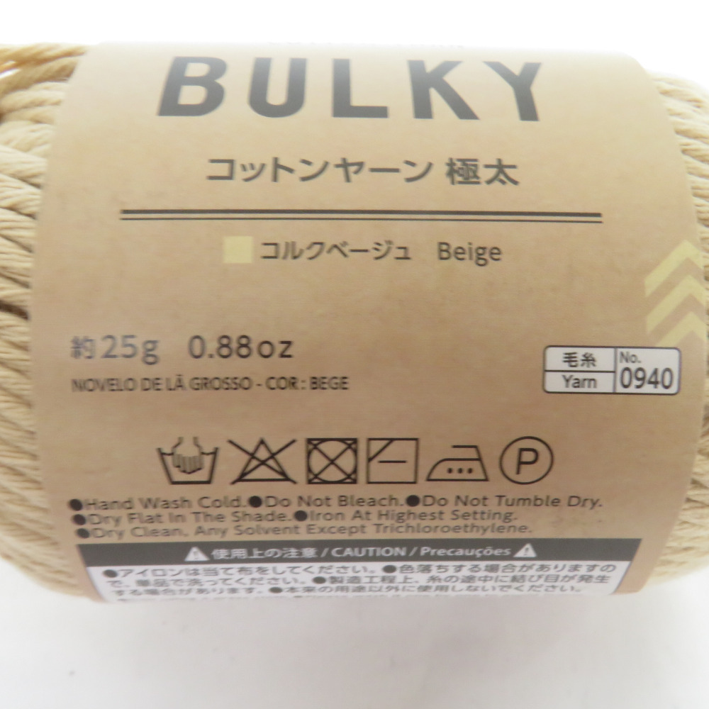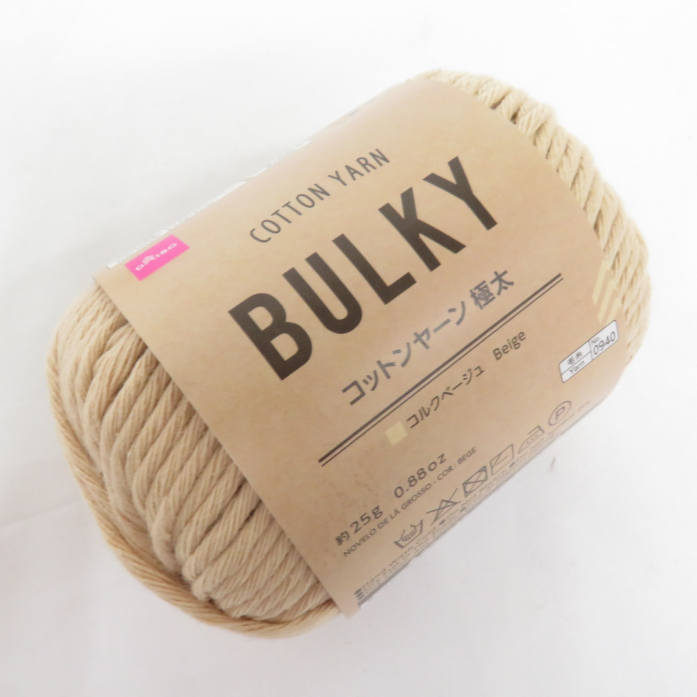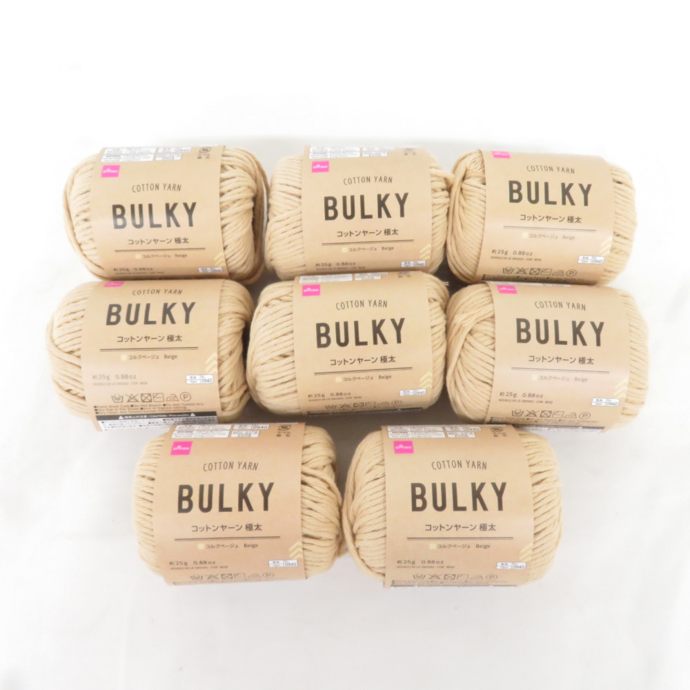 | DAISO ダイソー 毛糸 BULKY COTTON YARN バルキーコットンヤーン 8玉セット 1玉25g 約23m 極太 コルクベージュ 未使用品 |