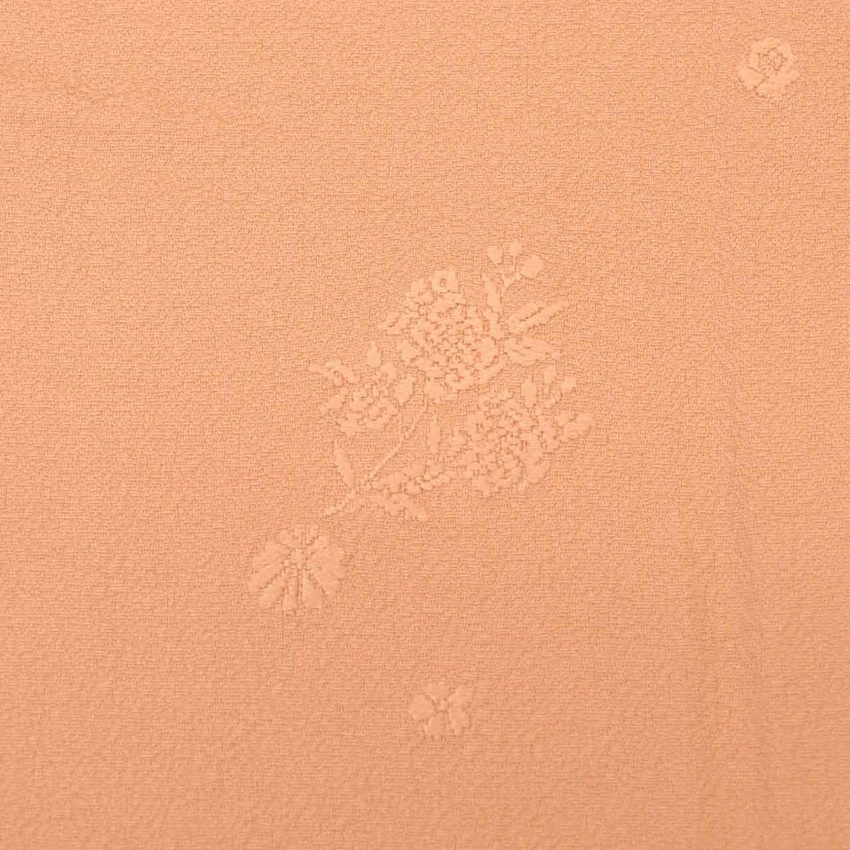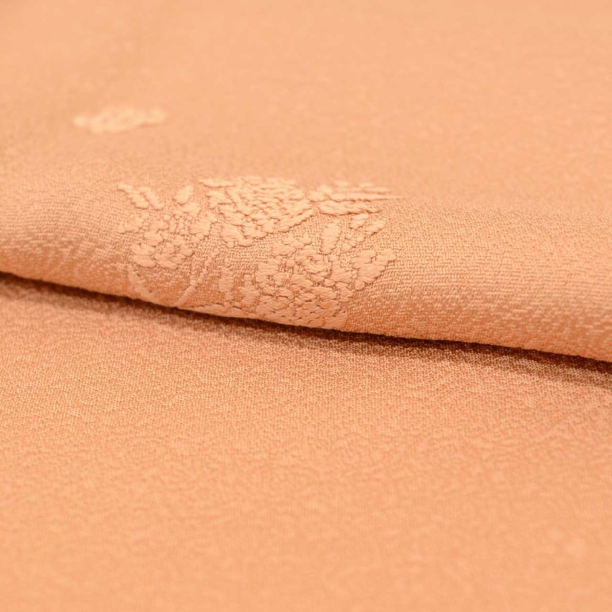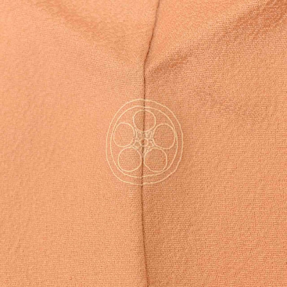 この度ご紹介いたしますのは、淡いオレンジ色の正絹色無地でございます。一つ紋が施されており、上品な雰囲気を纏っております。(正絹 絹 SILK シルク)ならではのしなやかな風合いと、美しい色合いが魅力の一枚です。様々なお席にご着用いただけます。淡オレンジ色の (正絹 絹 SILK シルク)の色無地で上品な雰囲気です