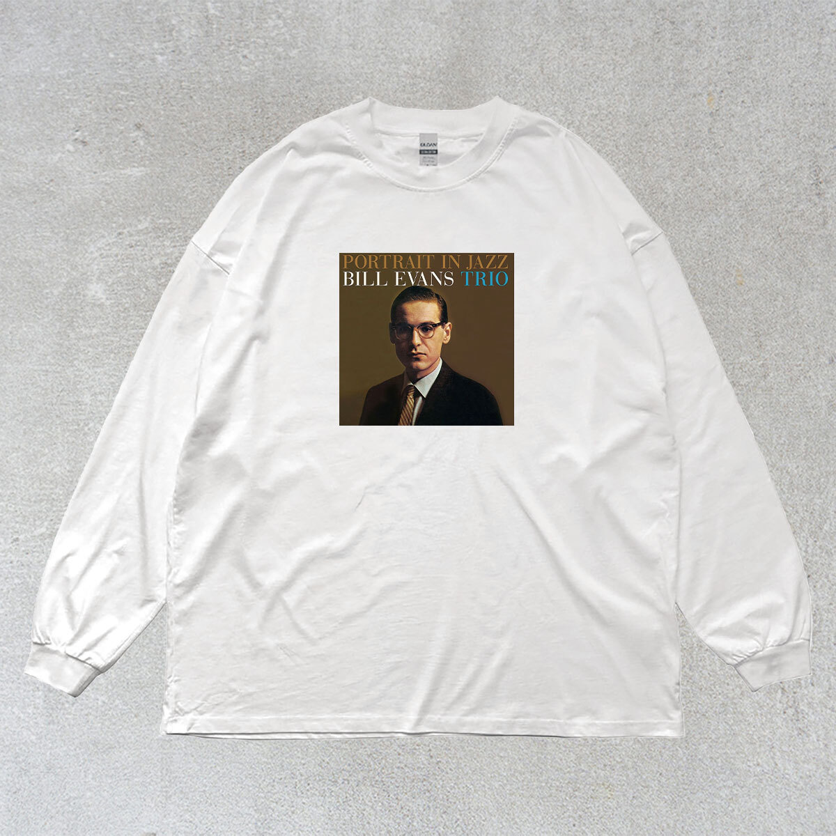 ビル エヴァンス Bill Evans フォトプリント リブ付き 長袖 Tシャツ ロンT キレイめ カジュアル 6.0oz コットン100% シロ ホワイト XL