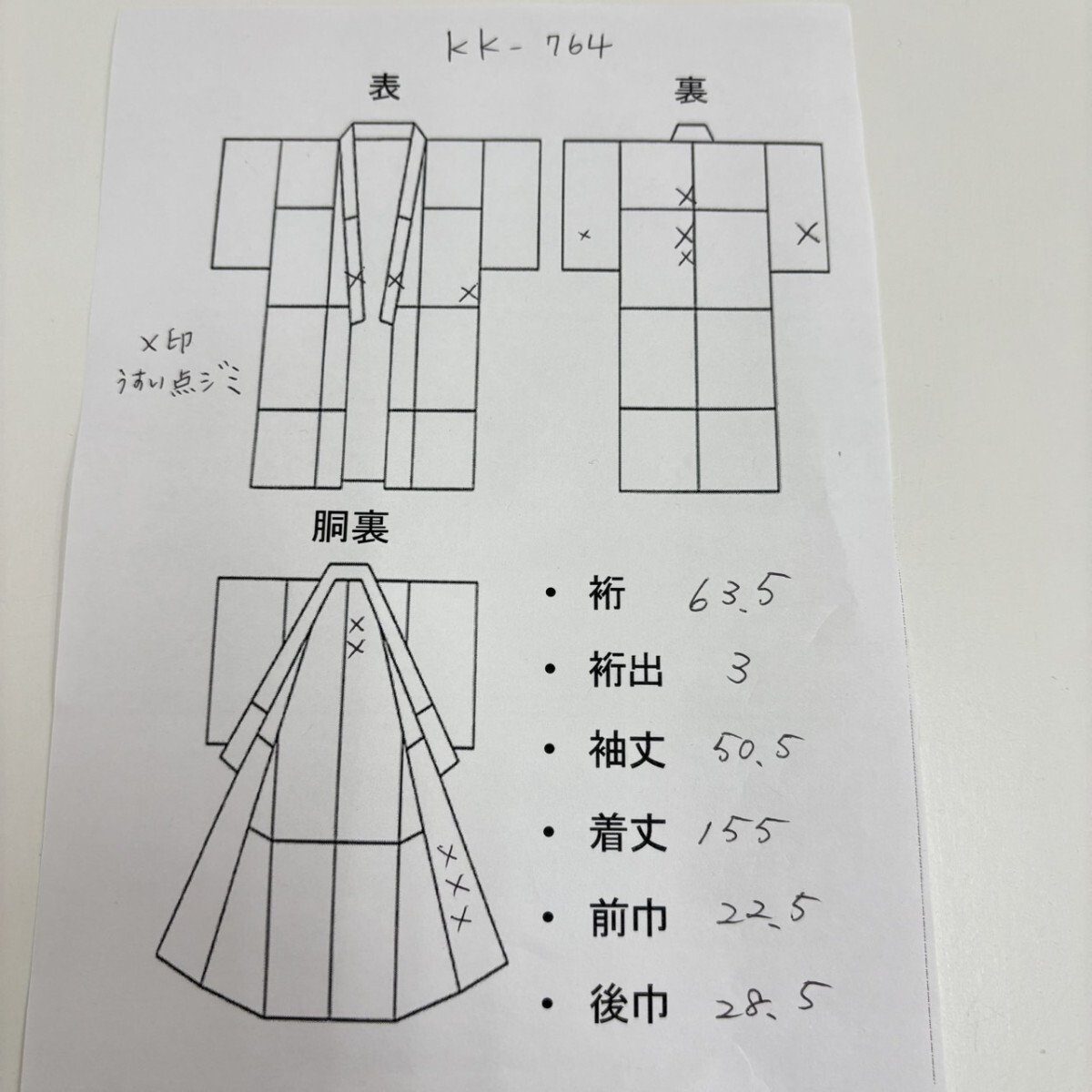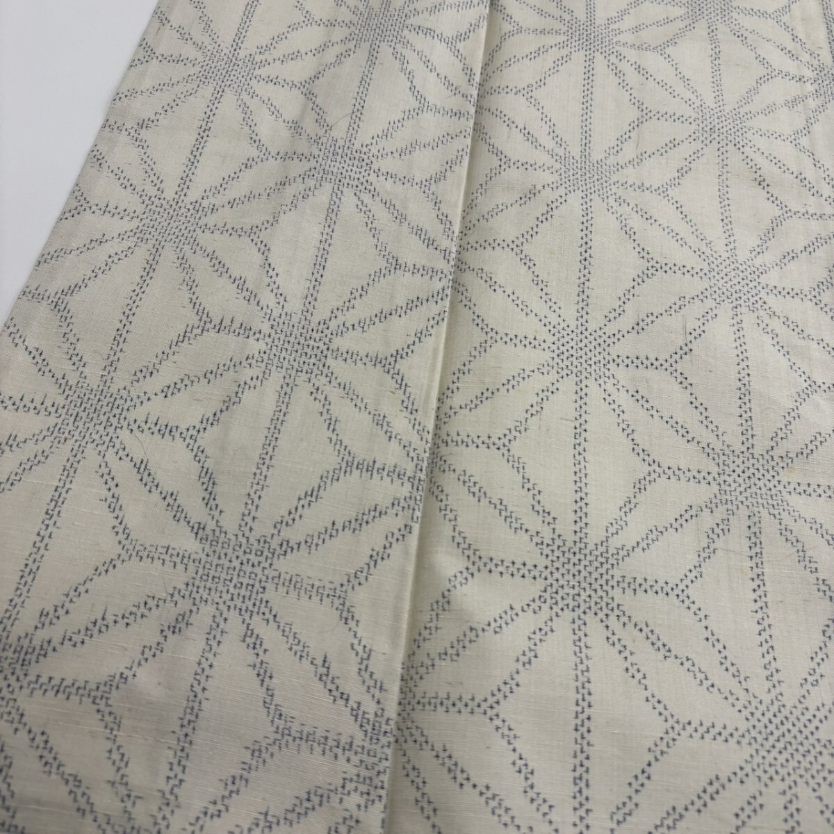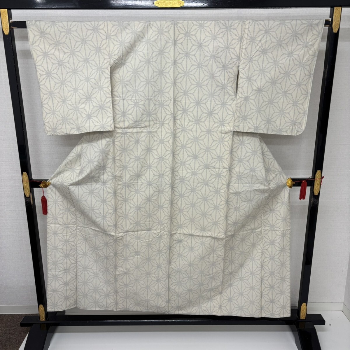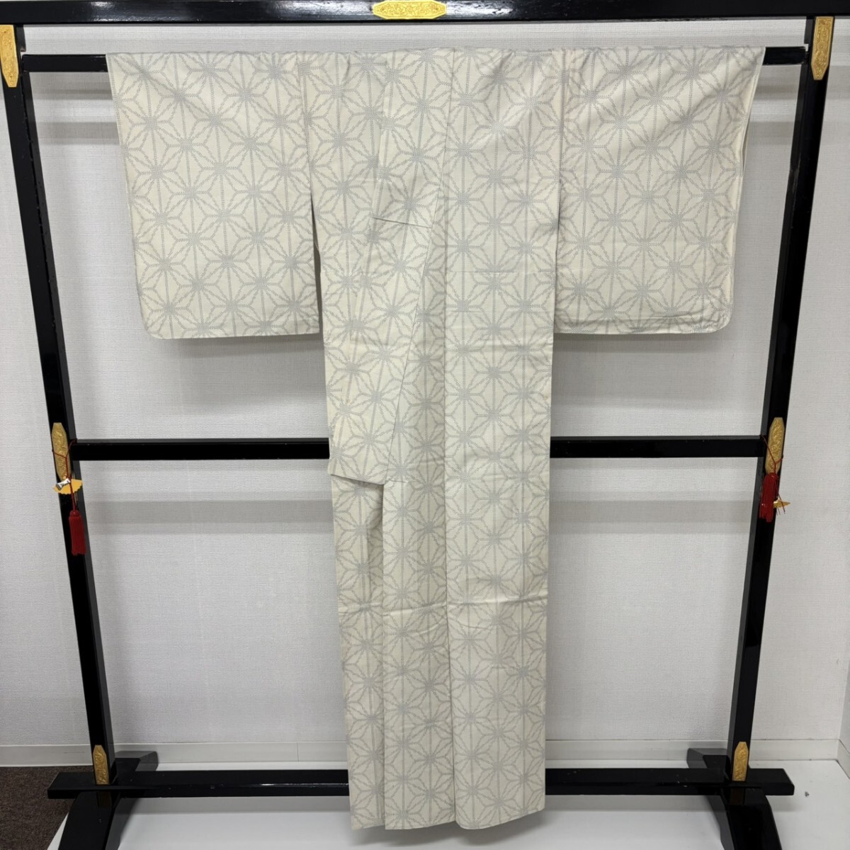 【楓】単衣 紬 正絹 麻の葉 絣 着物 KK-764