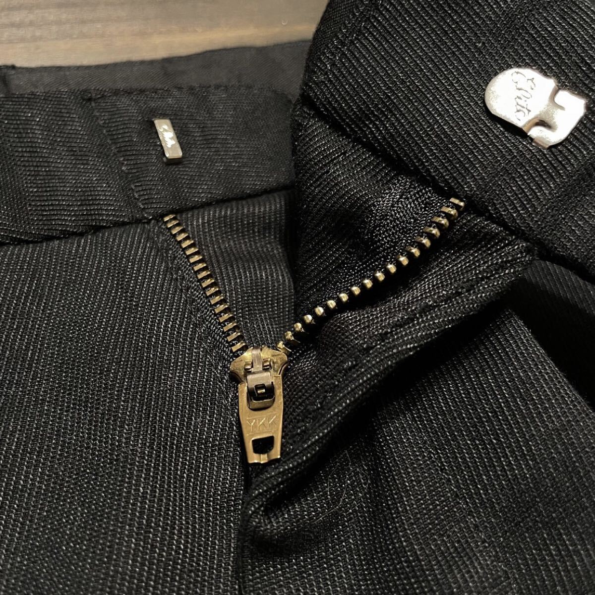 ストレートなシルエットでチノパンのようなシンプルな形ですが、ポケットのジップがポイントで効いてます◎