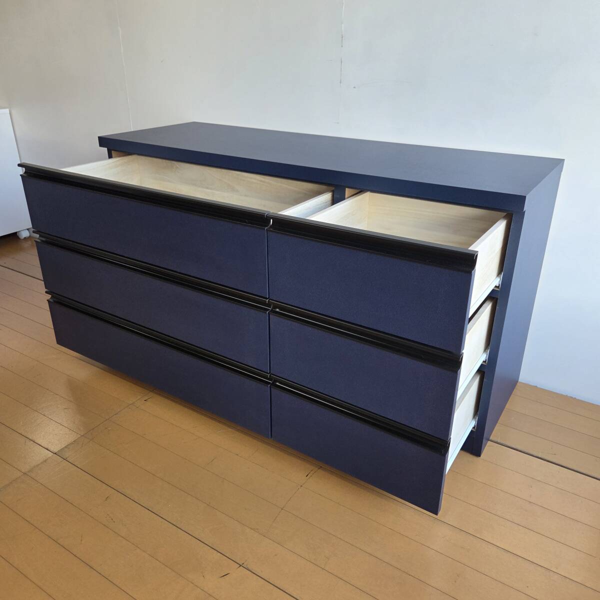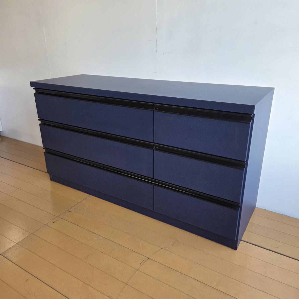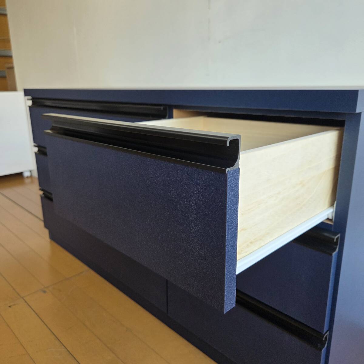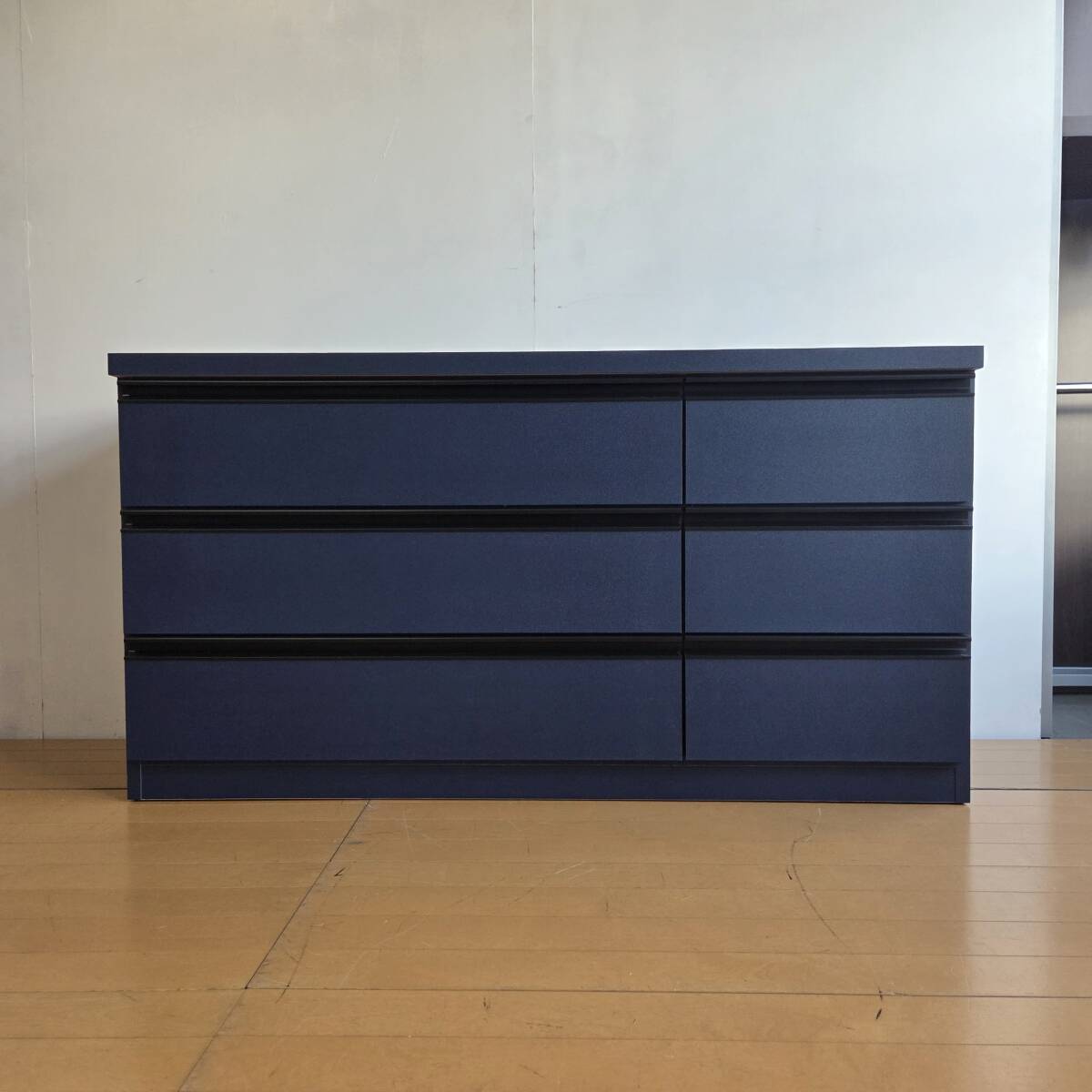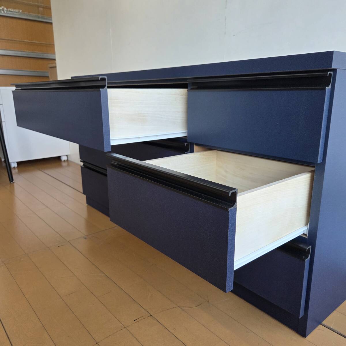 未使用訳あり 全段スライドレール付 コンプリートチェスト ローチェスト 幅120 3段 タンス モダン 収納 引き出し 濃紺 青 ブルー