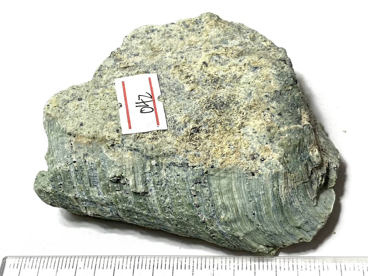 【商品の説明】 産地:パキスタン(産地の詳細は不明) サイズ:写真に写り込んだメジャーで推測してください。 重量:商品名に記載 今まで中国産の蛇紋石しか取り扱ったことがないのですが、正直「どこが蛇紋なんだろうか?」と思っていました。パキスタン産の品を見て、「なるほど~」と納得しました。まさに「蛇紋」ですね。