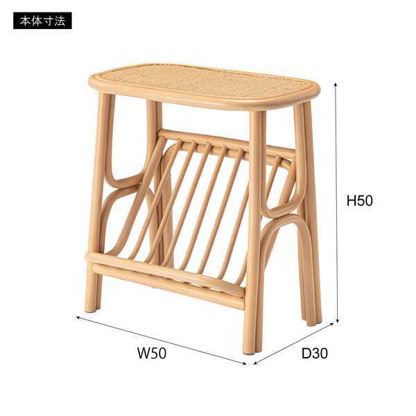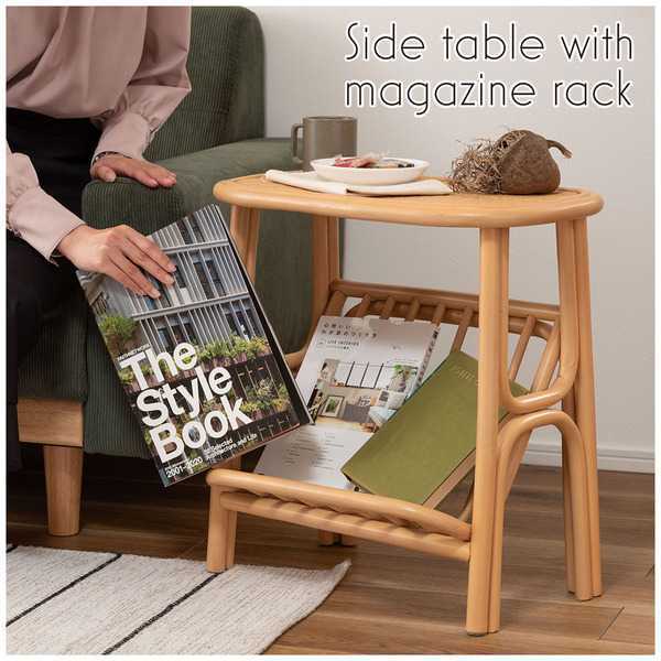 ●天然ラタンを使用したマガジンラック付きサイドテーブル。