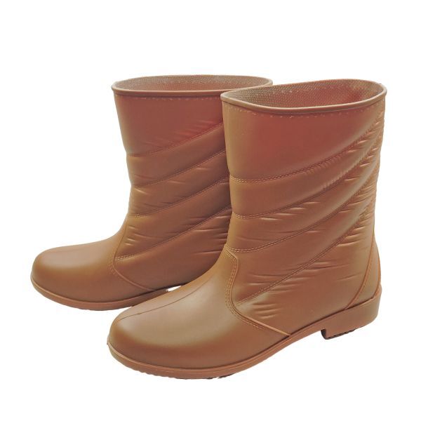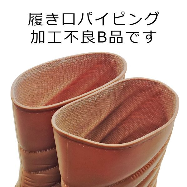 【履口の加工不良】B品 レディース レインブーツ LLサイズ 24.0cm ~ 24.5cm ブラウン 長靴 ミドルブーツ 柔らかい合成樹脂 af_16603