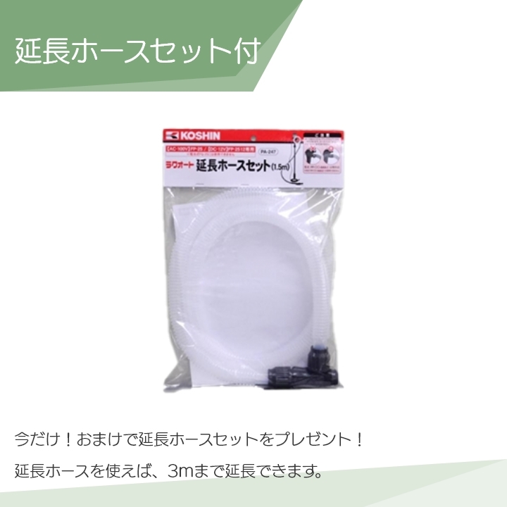工進 セット商品 ドラムポンプ FP-25 + 延長ホース PA-247 AC100V ポンプ ドラムポンプ 工進 電動ポンプ KOSHIN コーシン