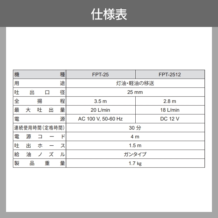 ポンプ 充電式 ポンプ 汲上 吸い上げ ドラムポンプ ポンプ 灯油 軽油 ドラム缶 ポリ缶 農業用ポンプFPT25