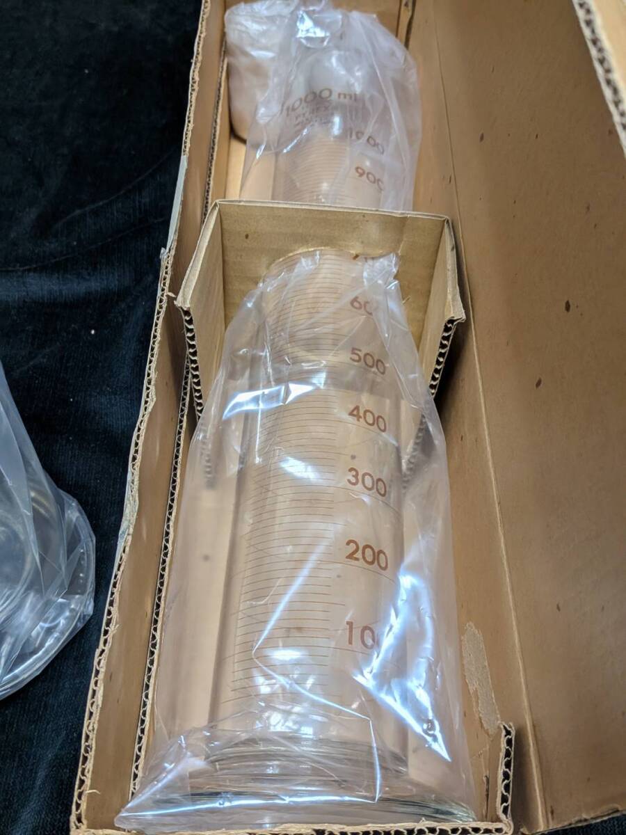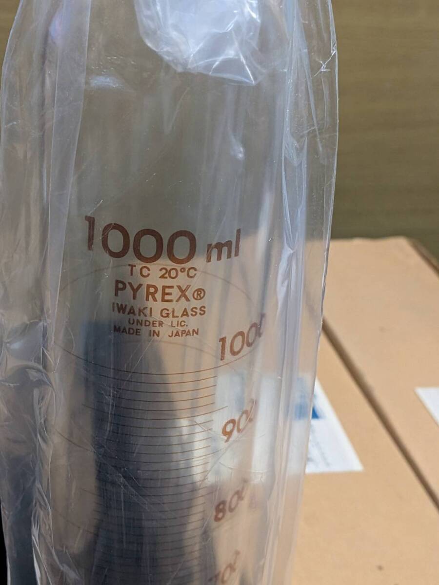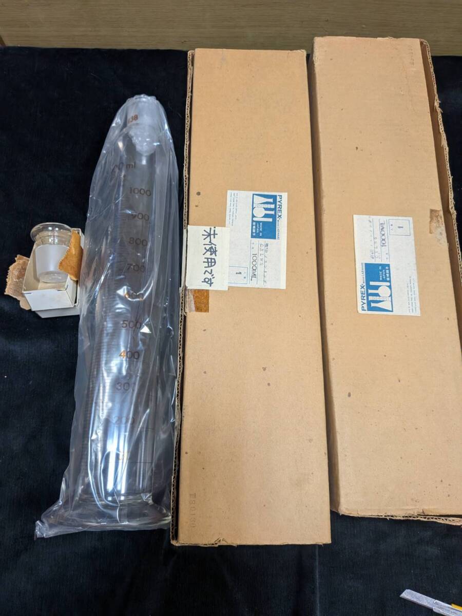 n5 新品未使用 岩木硝子 IWAKI 有栓 メスシリンダー 1000ml PYREX 3本セット 即決!