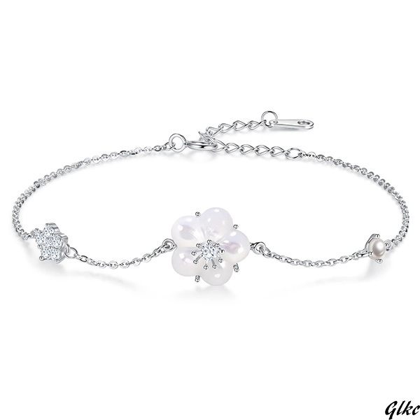 【花モチーフが女性らしく、フェミニンな印象を与える】 白蝶貝ブレスレット シルバー925 金属アレルギー対応 プレゼント ギフト