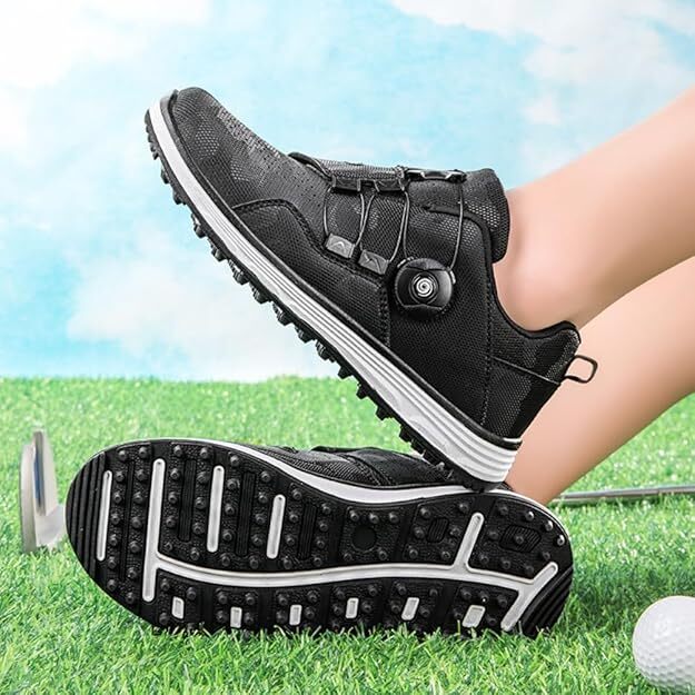 ゴルフシューズ ダイヤル式 メンズ ゴルフシューズ スパイク ゴル フ ウォーキングシューズ 防水 防滑 練習用 サイズ:27cm