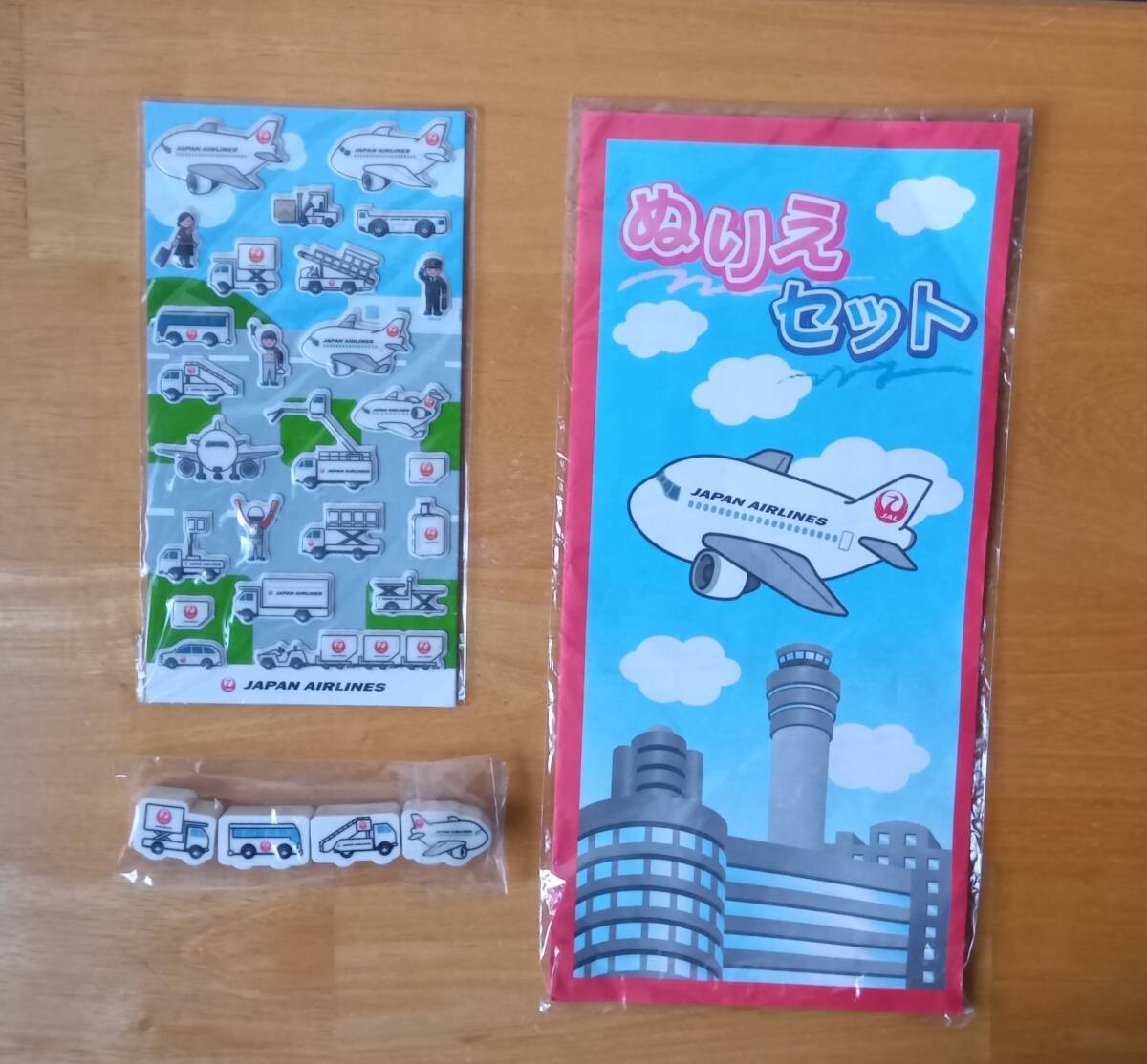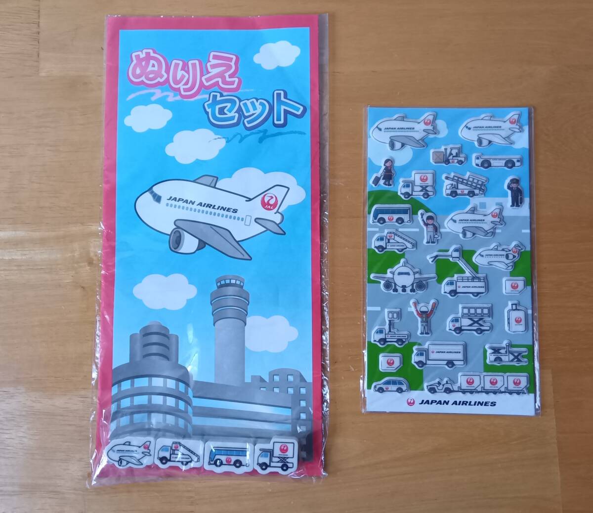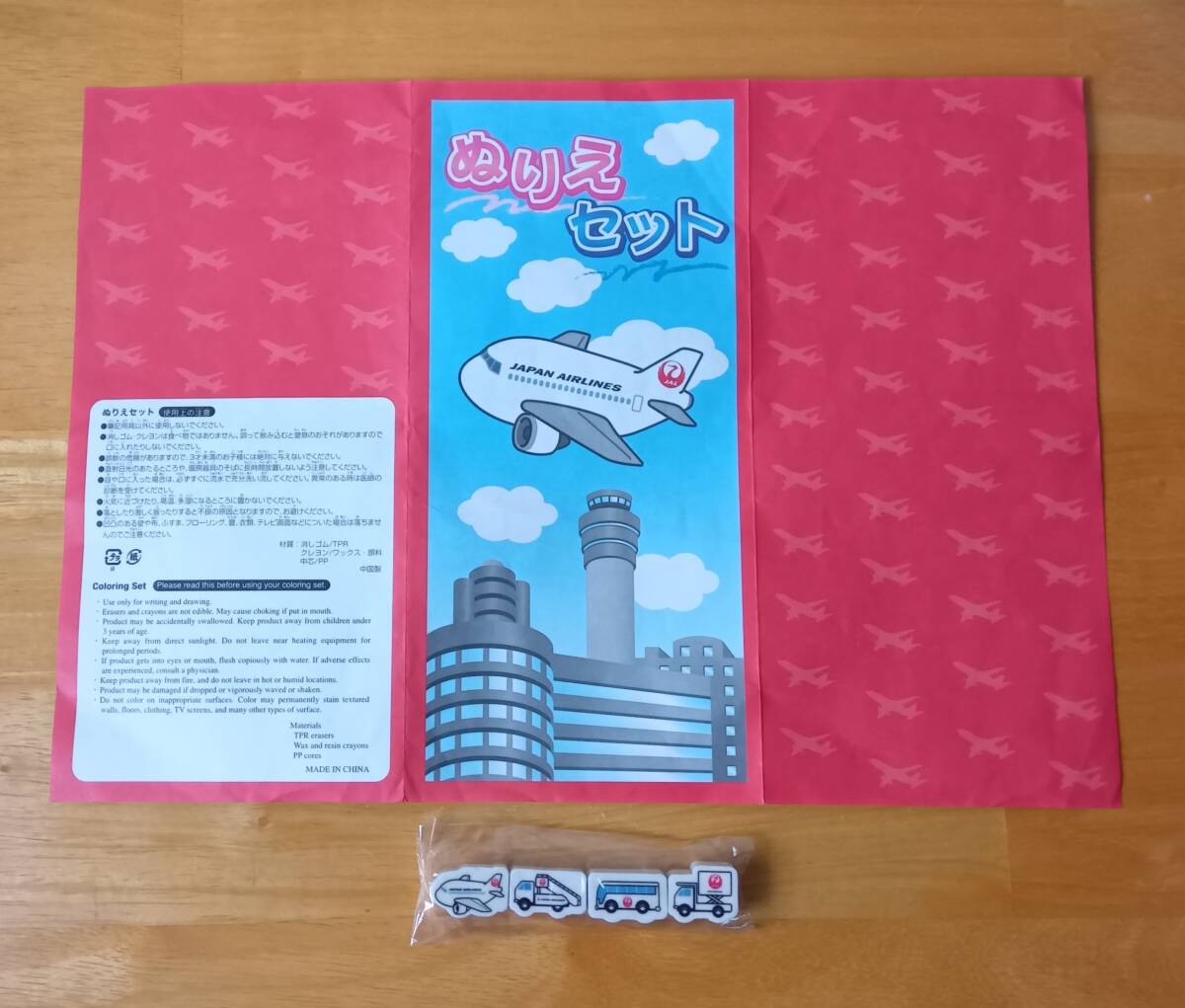 未使用 日本航空 ジャル ぬりえセット(消しゴム・クレヨン3色付)と ぷくぷく3Dシール セット 非売品