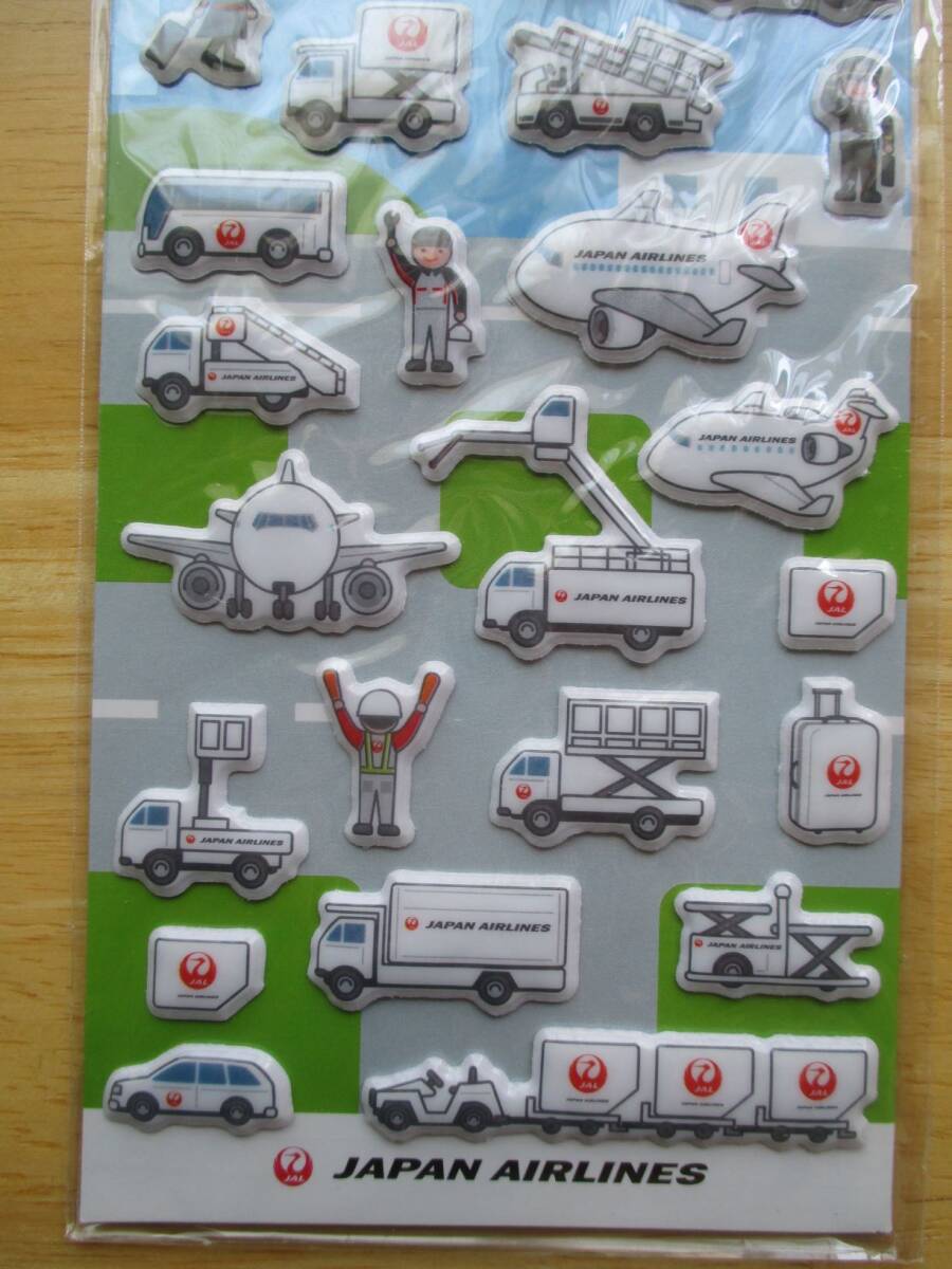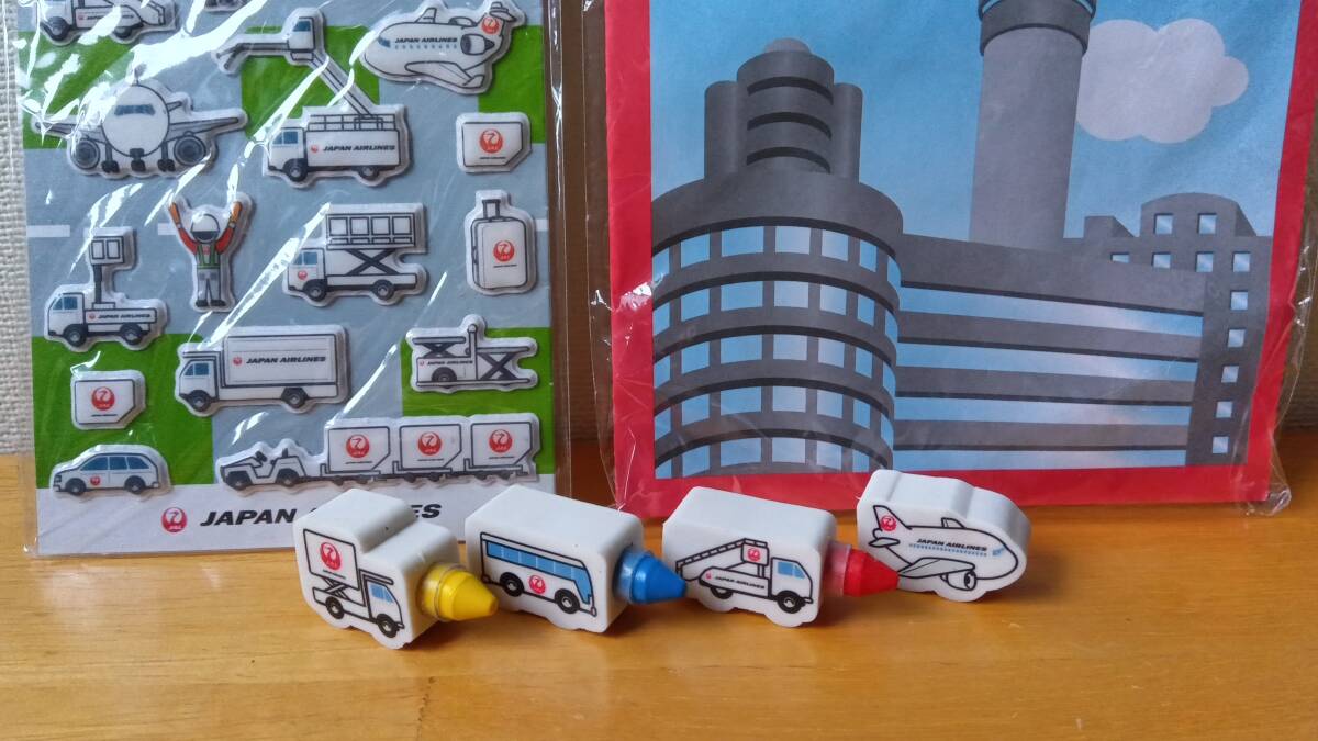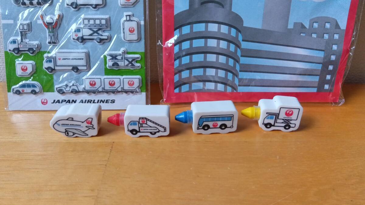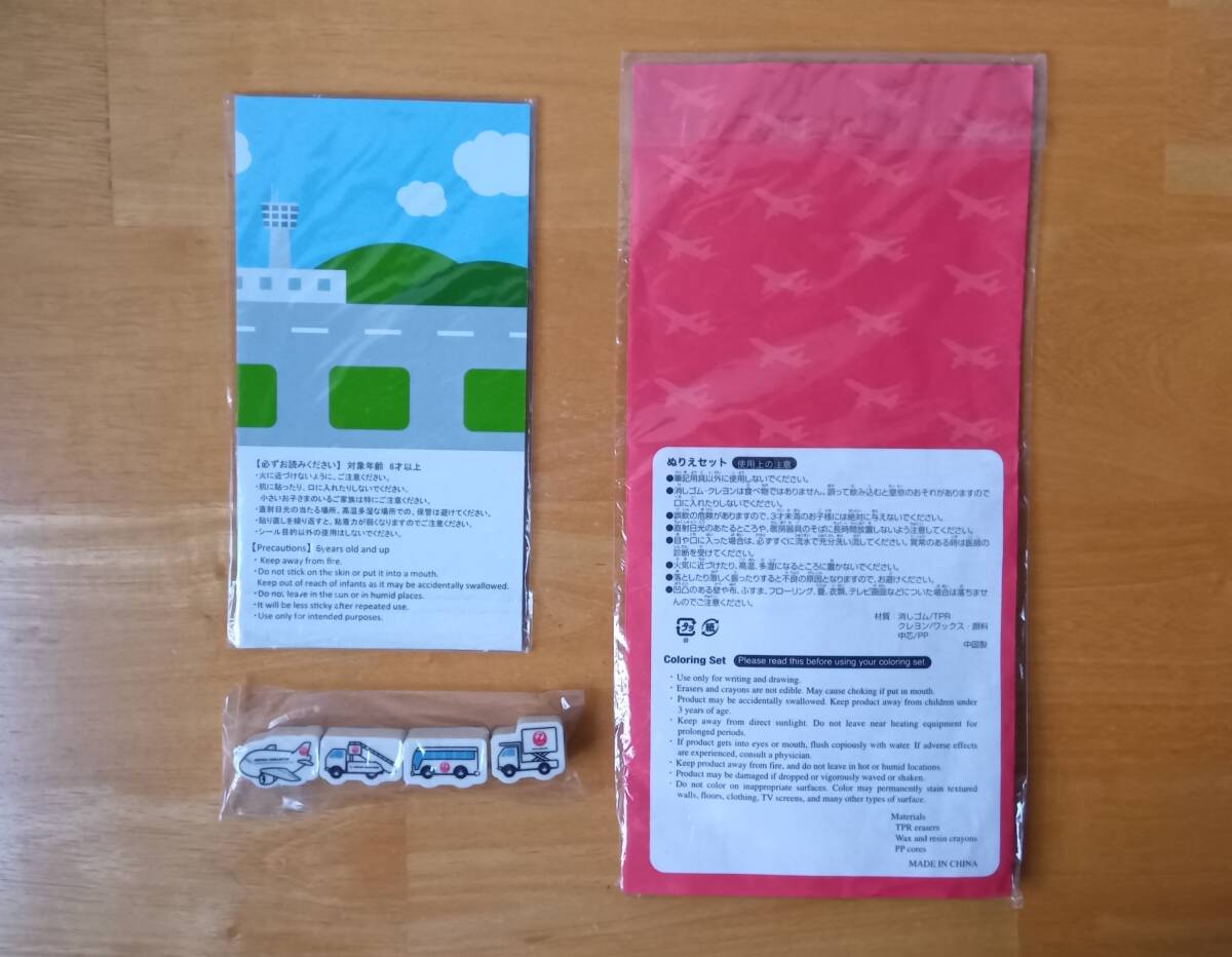 未使用 日本航空 ジャル ぬりえセット(消しゴム・クレヨン3色付)と ぷくぷく3Dシール セット 非売品