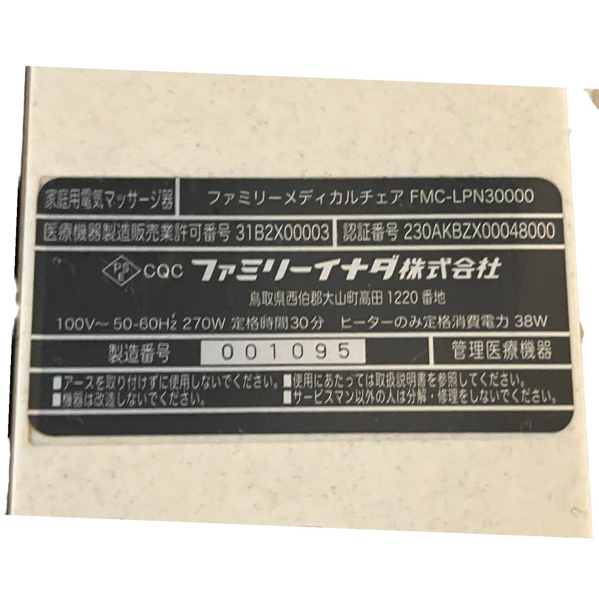 | 【店舗受取限定】ファミリーイナダ ルピナスロボ FMC-LPN30000 マッサージチェア 家庭用電気マッサージ器 家電 中古 直B10082150 |