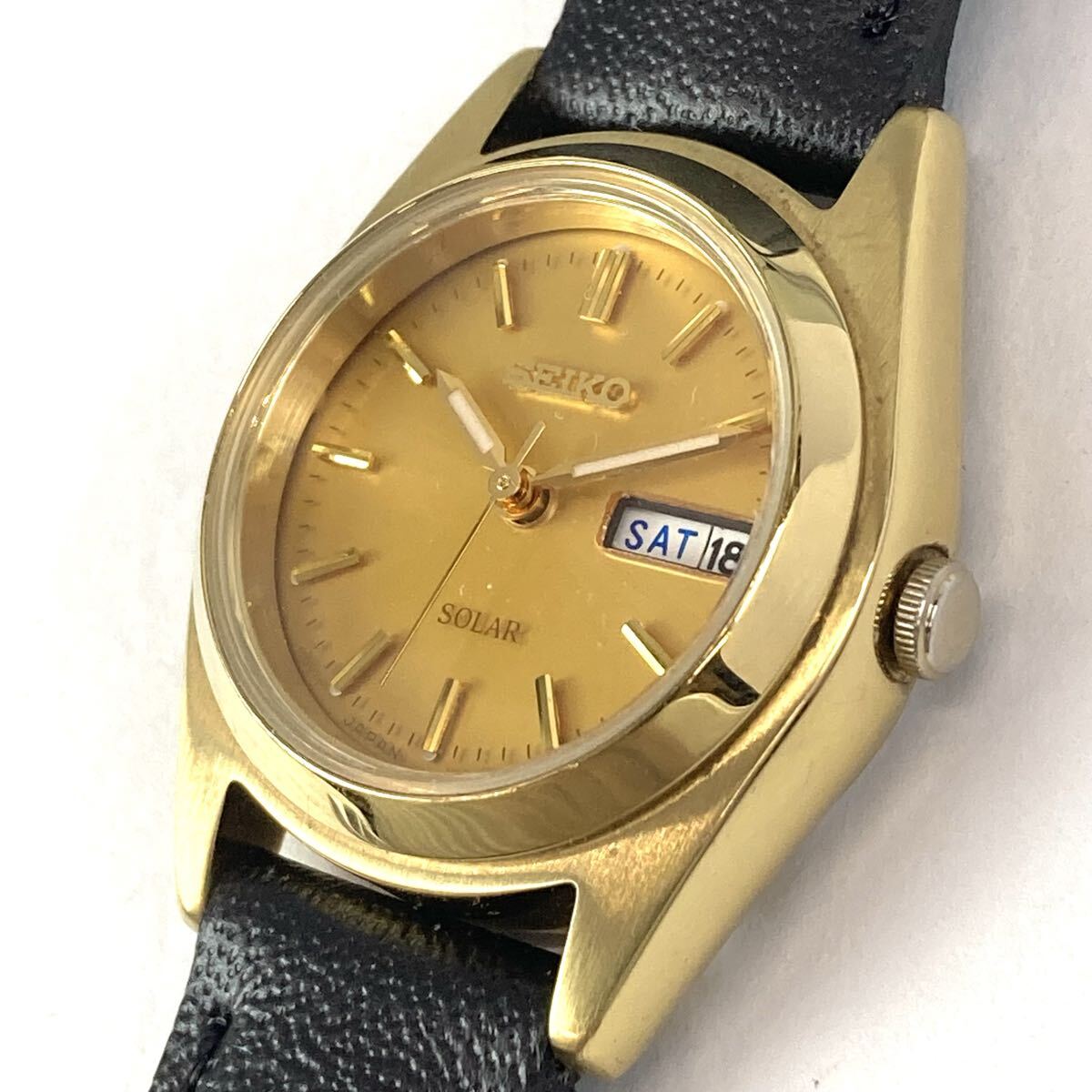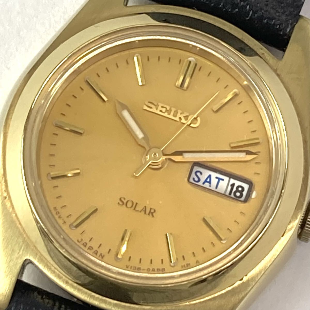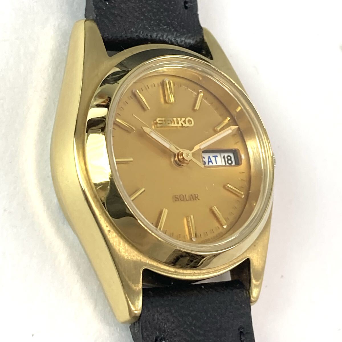| 商品説明 | SEIKO セイコー スピリット ソーラーウォッチ ゴールド文字盤 デイデイト レディース腕時計 [材質] ステンレス [ケースサイズ] 約25mm [手首周り] 約16cm前後 [動力] ソーラー 電池式 [リュウズ] ◯ [電池交換] ー [動作] 稼働(精度不明) [その他] ベルト交換 [状態A] 多少の細かい擦れやキズがあります。 機能面に問題があるようなキズやヨゴレはなく、まだ愛用いただける中古品として状態の綺麗な時計です。 ■商品状態の目安 【N】 新品もしくは中古未使用品。 【S】 未使用、数回使用、デッドストック等で新品に近い商品。 【A】 キズや汚れが少なく、中古品として状態の良い綺麗な商品。 【B】使用感やキズ、ヨゴレはあるが機能面に問題のない良品、一般的な中古商品。 【C】 目立つヨゴレやキズ、色褪せなど使用感のある商品。 【D】 ヨゴレやダメージがひどいもの、または破損している難あり商品。 520241/V138-0AA0 330251013Bsennan |