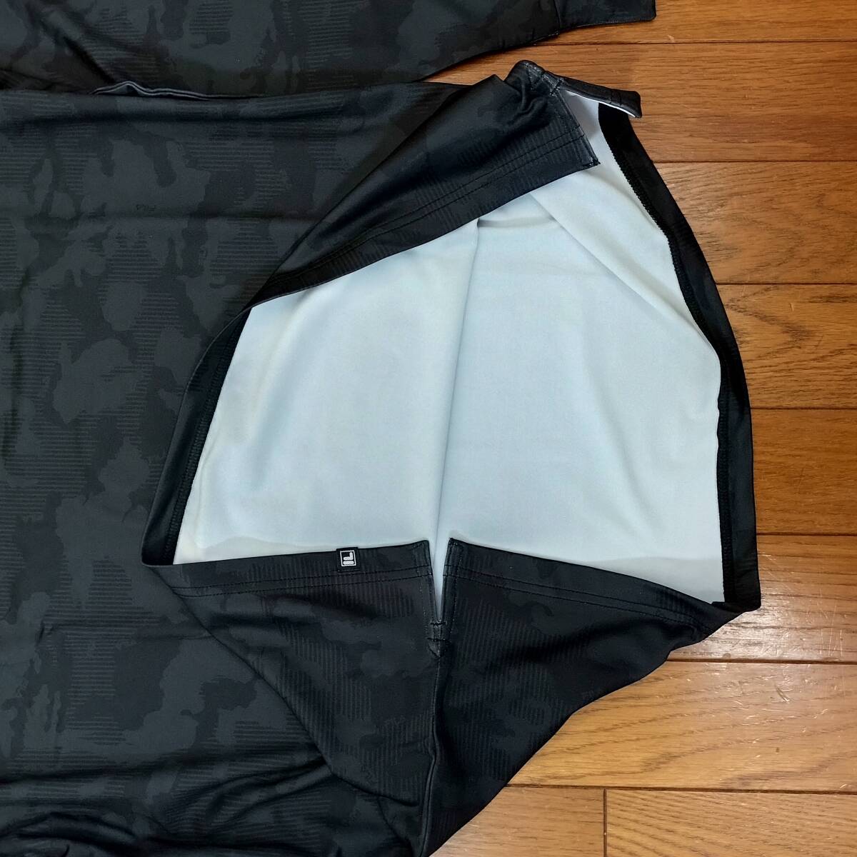 素材はポリエステル88%ポリウレタン12%、ストレッチ生地です。