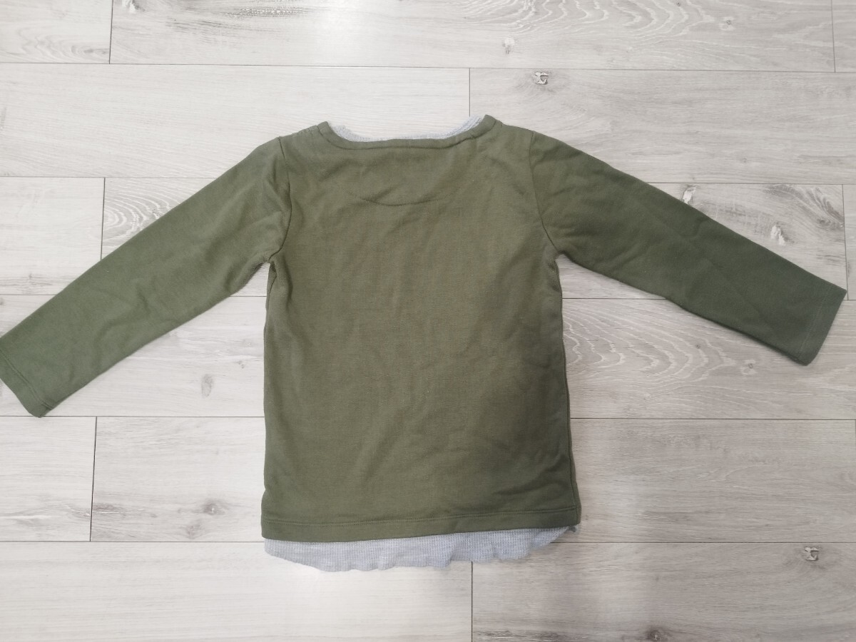 カラーはモスグリーン、サイズは130cm、平置きで身幅約37cm、着丈約50cmです。