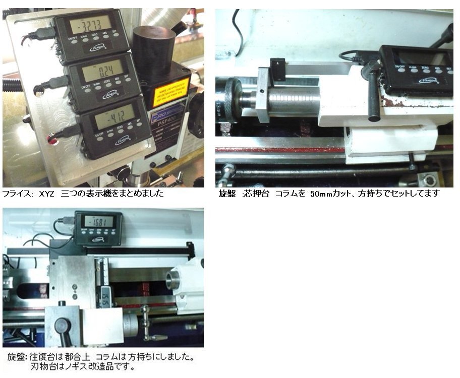 | 商品詳細 | ☆デジタルスケール + 表示器一式の価格です。 ★有ると無いとでは大違いです。ぜひ、この便利さを実感してください。 別途 150mm,200mm、300mm、600mmも出品しています。 ☆卓上フライス板取付事例(機種は違います)→ここをクリックしてください。 ☆卓上旋盤板取付事例(機種は違います)→ここをクリックしてください。 ◎仕様 ・全長 65cm ・最大計測 500mm ・表示 0.01mm/0.001インチ 切り替え ・測定精度 ±0.02/100mm ・電源 3V CR2032×2個 ・表示器コード長 約1800mm ・オートOFF なし 勝手に電源OFFになりませんので、作業性が良くなりました。 ◎機能説明 ・in/mm インチとミリとインチ分数表示切り替え ・SET インチ分数表示の場合の分母を変更します。 ・ZERO ゼロリセット ・ABS このボタンを押すと現在地が0点(基点)となり計測します。 再度このボタンを押すと元の基点をベースとした測定に戻ります。 ◎セット内容 ・デジタルスケール + 表示器 ・CR2032×2個 ・取り付け金具、ネジ類 表示器は裏側に磁石がありますので、セット、移動は自由に行えます。 ・取扱い説明書 英文ですので、当方作成の日本語説明書を添付いたします。 ※1年間保証です。 商品発送時に添付している領収書が購入期日の証明になりますので、 大切に保管してください。 ただし、不良部品を返送していただき、取扱説明書にある<◎異物混入>が 原因の場合は保証対象外となります。 返送料金は落札者様にご負担いただきます。 ※作動を確認して発送しておりますが、不具合がある場合はお荷物到着後 一週間以内にご連絡ください。 ※計測部がコラム上をスムーズに移動できるよう、本体への取り付けが大切です。 切削機器と本品のコラムと計測部が常にスクエアになるようセットしてください。 コラムの両端を固定することが難しい場合は、片方の固定(方持ち)でも可です。 ・コラムをカットにつきましては、メーカーが推奨している訳ではありませんので、 自己責任で御願いいたします。 今のところ、コラムカットにおける問題の報告はありません。 ・使用にあたっては、自己責任でお願いします。 |
