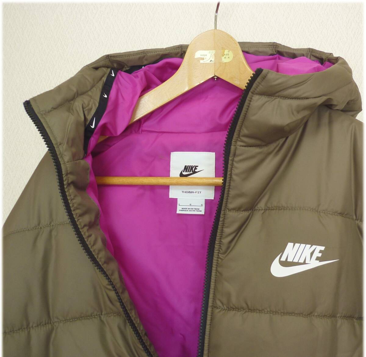 新品未使用品ですナイキ スポーツウェア Therma-FIT ジャケットは、Nikeの人気レイヤーをアップグレード。耐候性に優れたRepel素材と断熱素材の両方に、ペットボトル由来のリサイクルポリエステルを使用。スキューバフードと重ね着しやすいフィット感で、寒い季節にぴったりの定番アイテムに仕上げました。Nike Therma-FITテクノロジーが体温調節をサポートし、寒い日も暖かさをキープ。断熱素材と対候性に優れたNike Repel素材には、リサイクルポリエステルを100%使用。フリース素材の袖口が快適な着心地を提供。前面のジッパー付きポケットは、スマートフォンや鍵を安全に収納できるだけでなく、冷たくなった手を温めたいときにも便利です。ナイキ正規品(直営店で購入) 品番DJ6996-223 定価15400円 156サイズ レディースL 身丈57.5cm身幅56cmバスト89.5~95cm