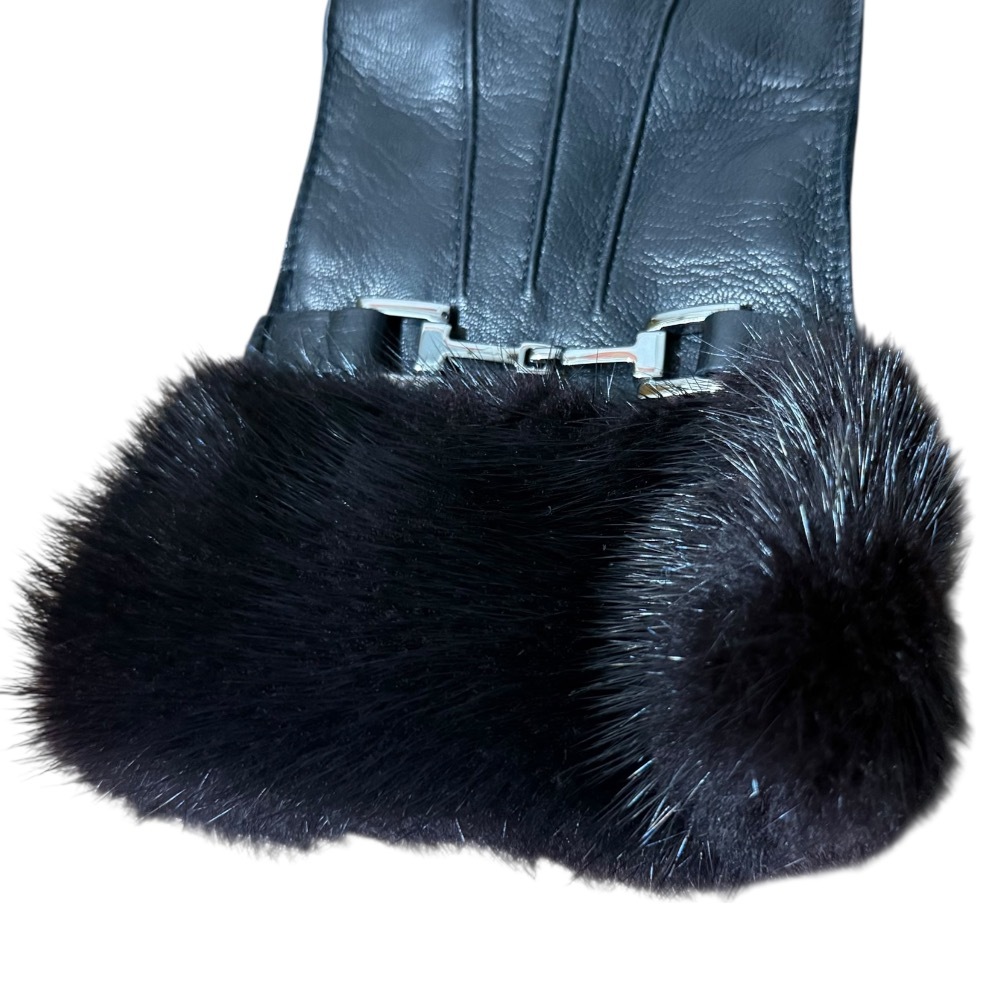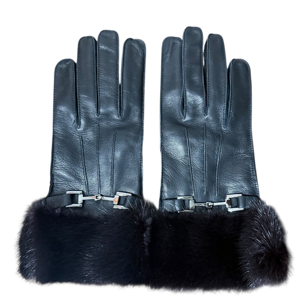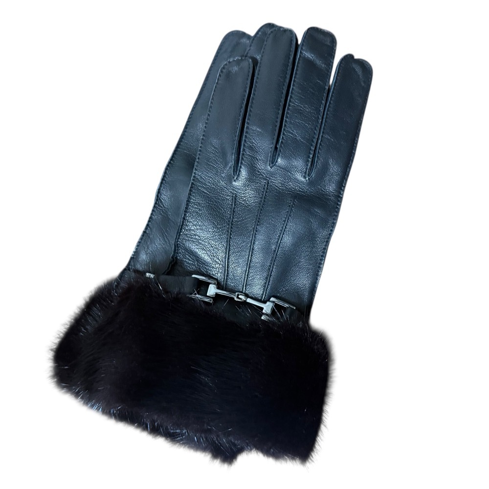 美品 GUCCI グッチ トムフォード期 ミンクファートリム ホースビット グローブ 手袋 7 ブラック