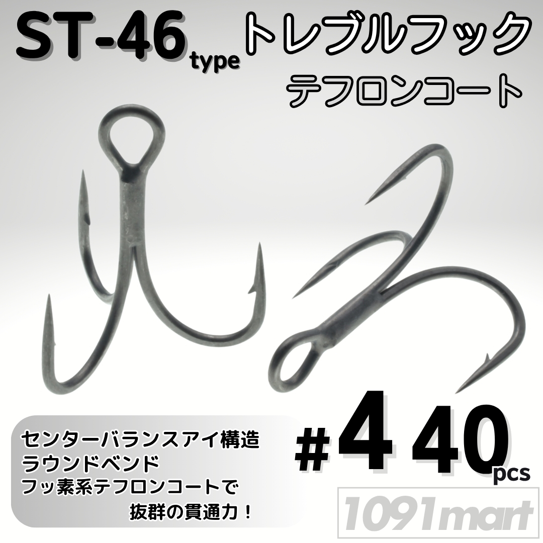 ST-46タイプハイパー防錆トレブルフック テフロンコート#4 40本セット 高品質ルアーフックソルト対応 トリプルフック 釣り針【1091mart】