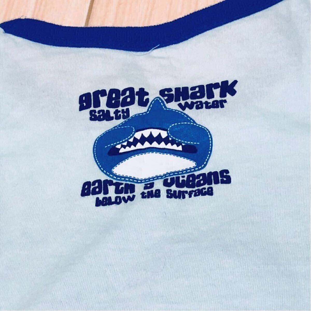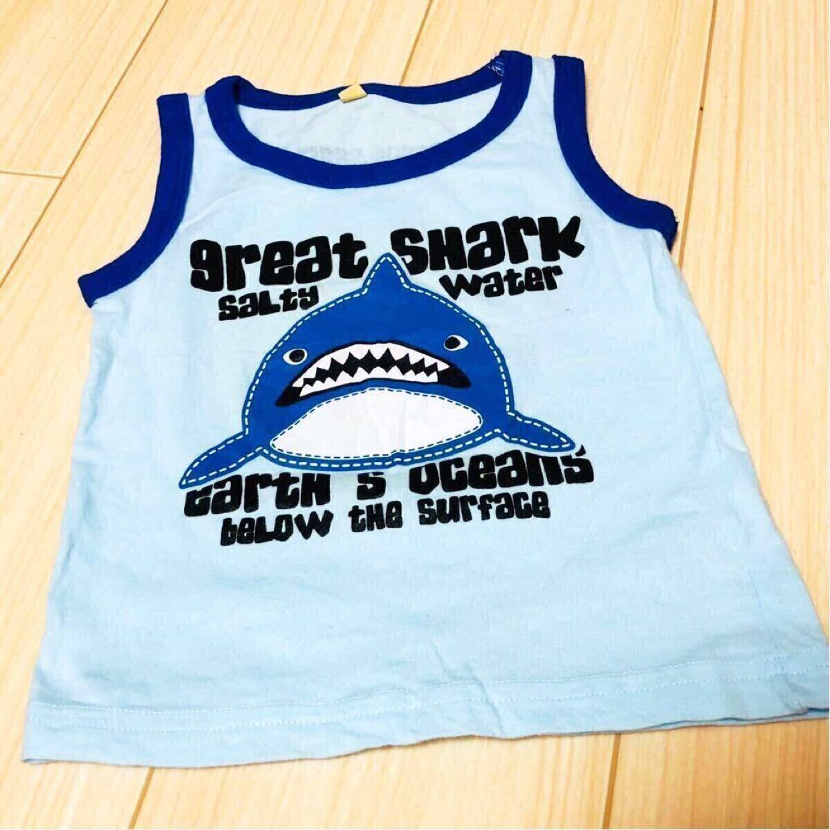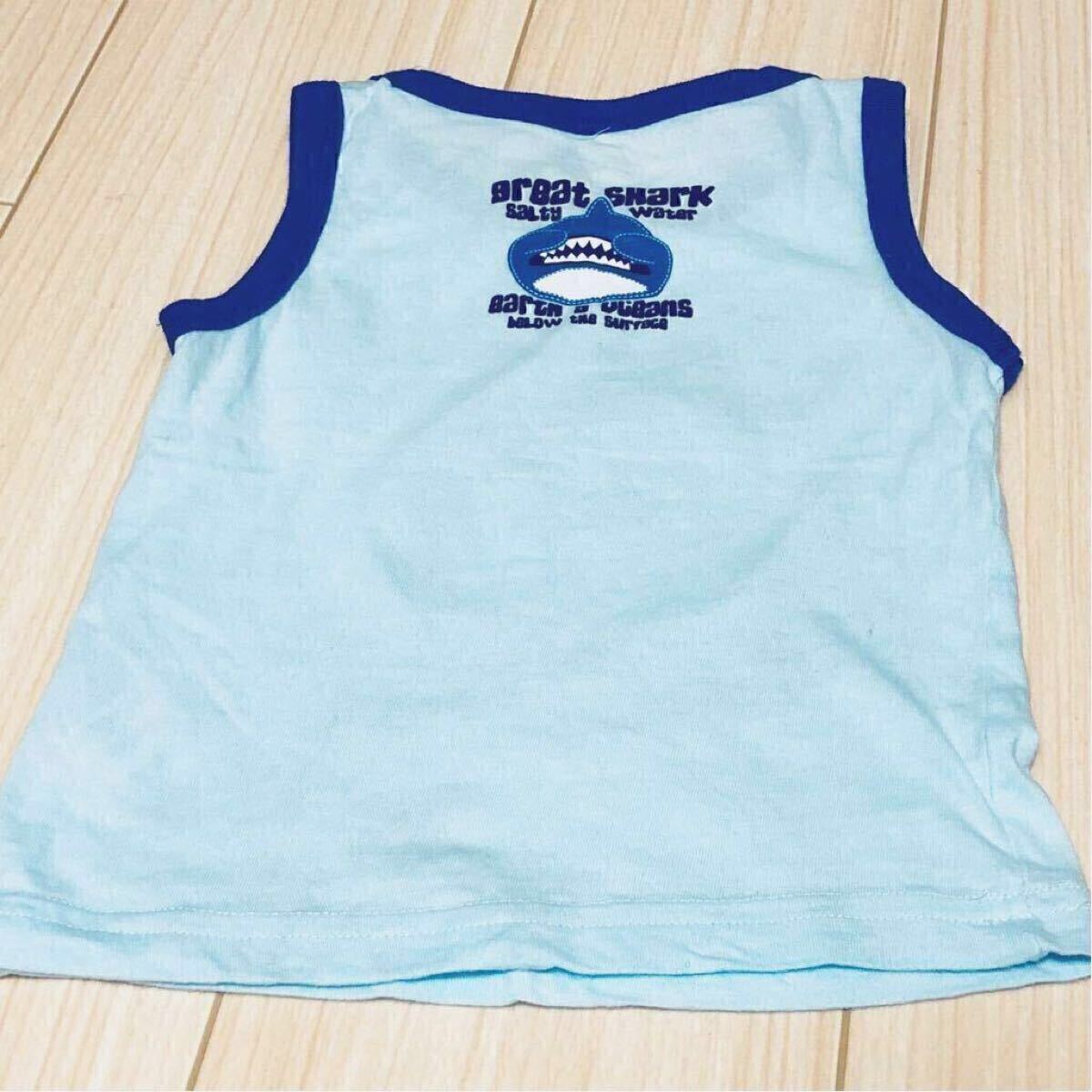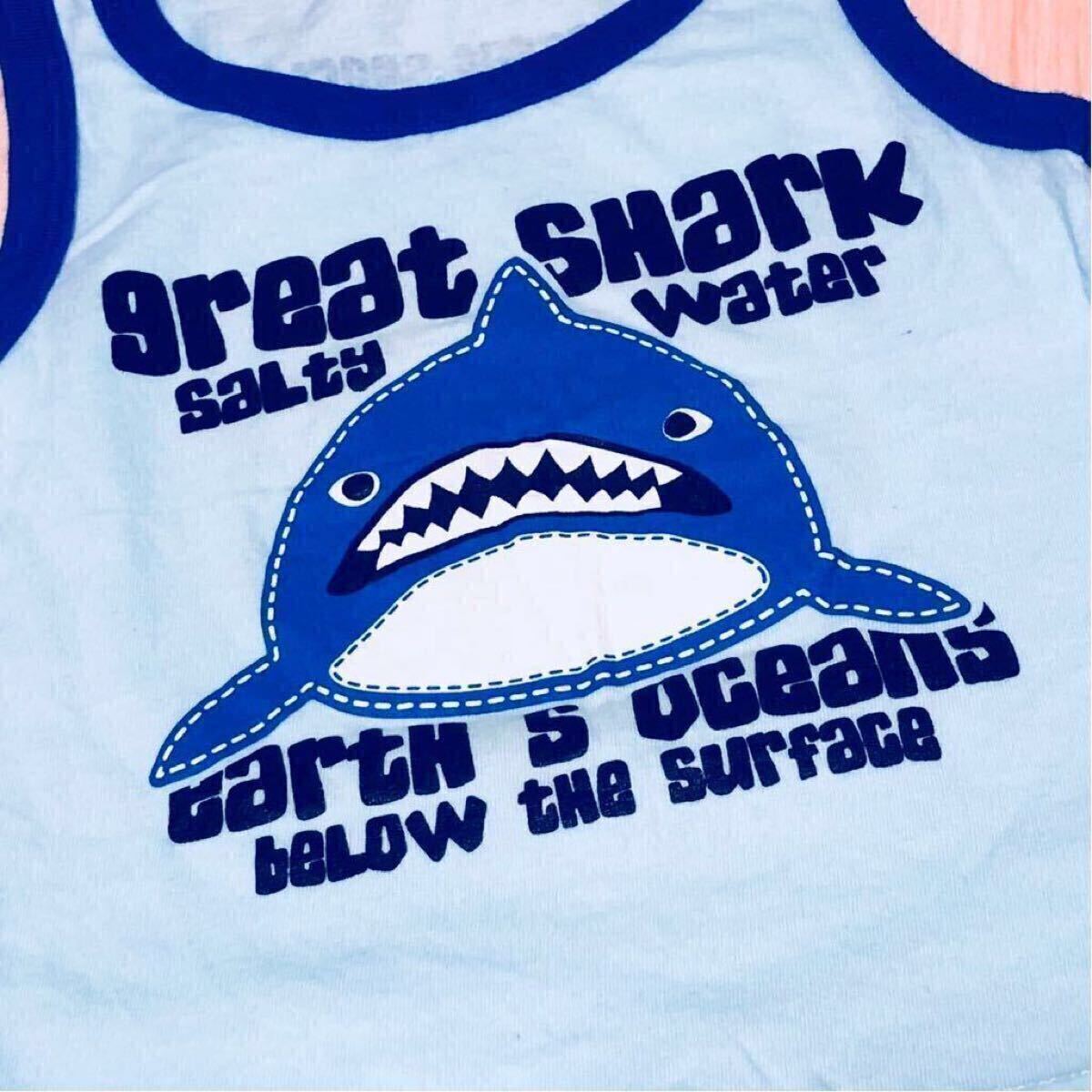 サメのプリントが可愛い男の子用のタンクトップです。カラーは水色です。
