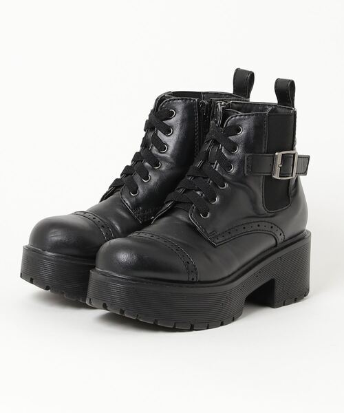 キーワード:ブーツ レディース ショート ストレートチップ ヒール 厚底 紐 秋 冬