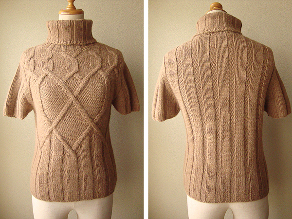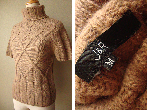 J&R ジェイアンドアール アルパカ ウール 半袖 ニット M 茶系 ベージュ タートルネック セーター