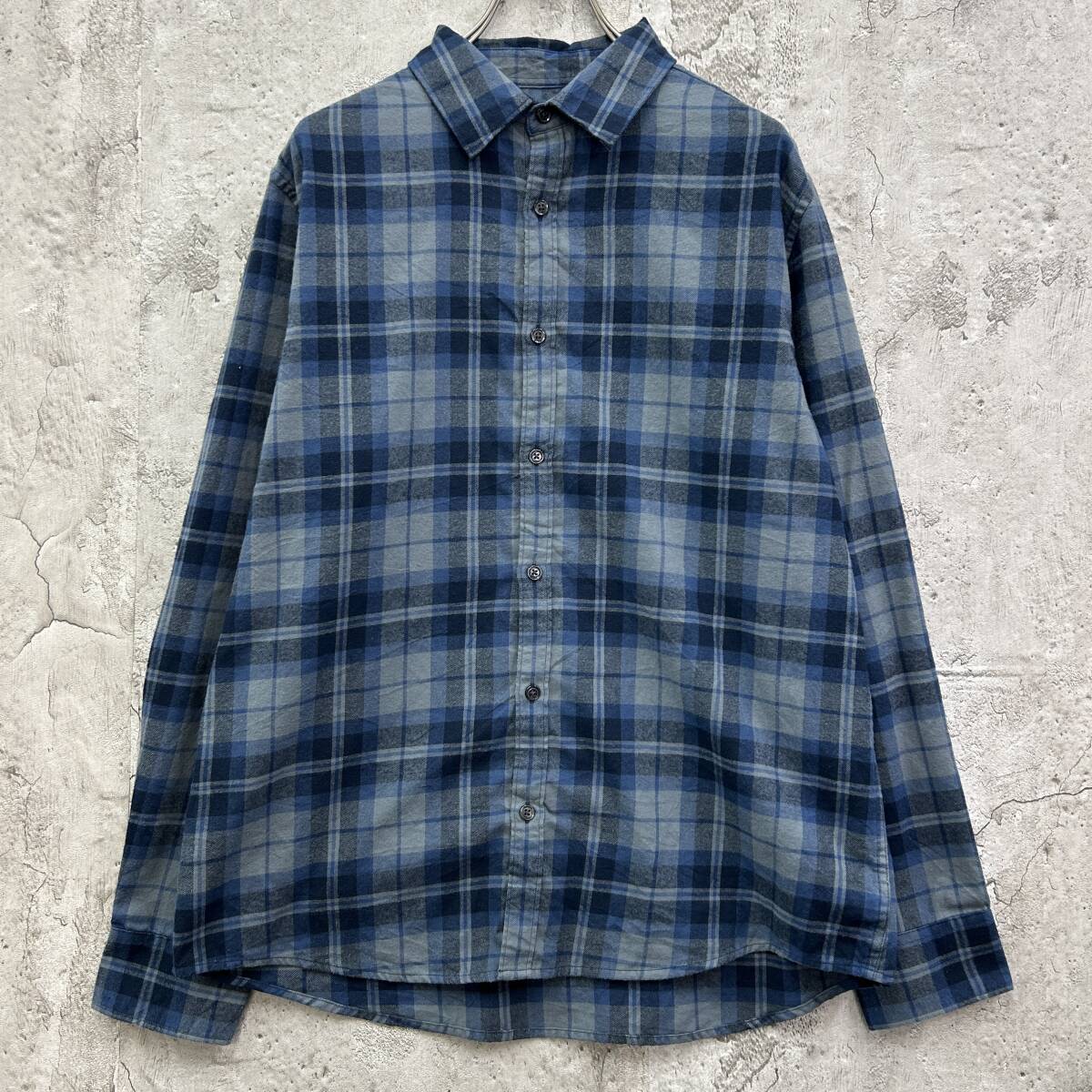 PERRY ELLIS ペリーエリス チェック 起毛 コットンフランネル トップス 長袖 ネルシャツ 古着 ブルー L