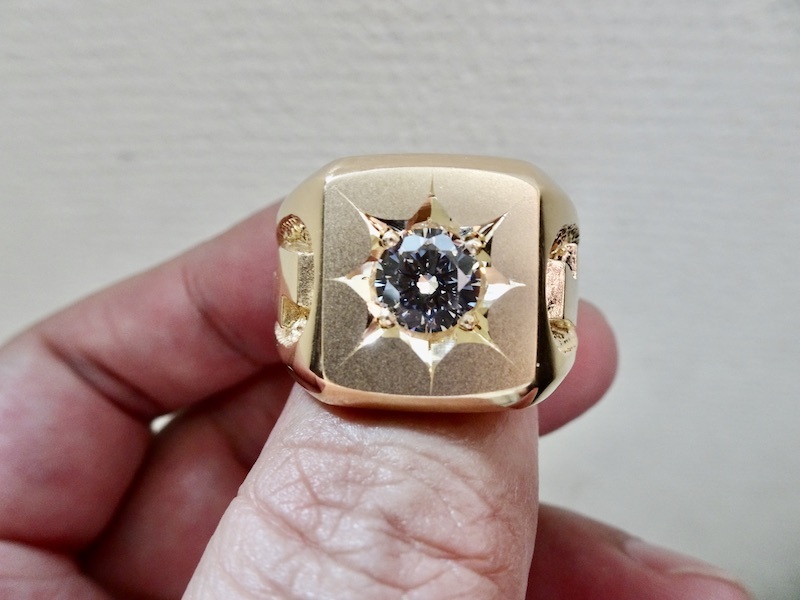 | ■ ■ 商品名: 『一つ星ジルコニアゴールドサンダー印台リング』 ■ ■ |