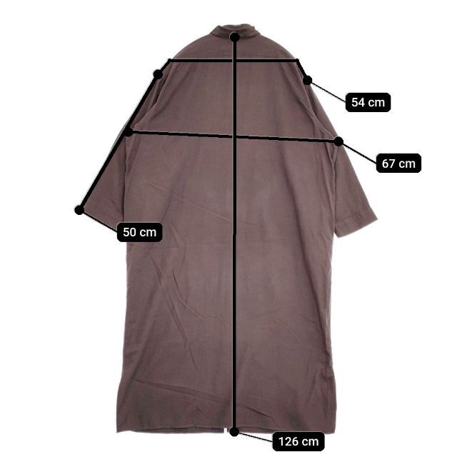 | 実寸サイズ | 肩幅:約54cm 着丈:約126cm 身幅:約67cm 袖丈:約50cm ※採寸画像がある商品はハンガーに吊るした状態での計測のため、平置きでの採寸とは差が生じる場合がございます。平置きでの実寸サイズをご希望の場合は、ご購入前に必ずご質問ください。 ※記載以外のサイズが合わないことを理由とした返品はできませんので、 記載部分以外で実寸サイズの気になる箇所があれば必ず購入前にご質問ください。 |