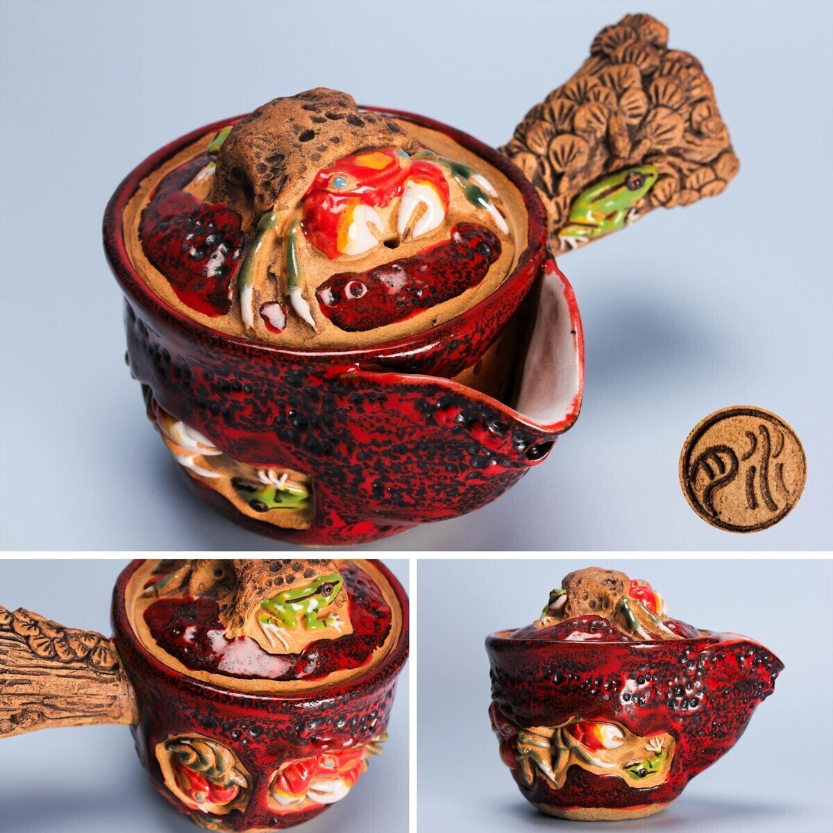 水月焼 蛙蟹彫茶注 急須 未使用美品