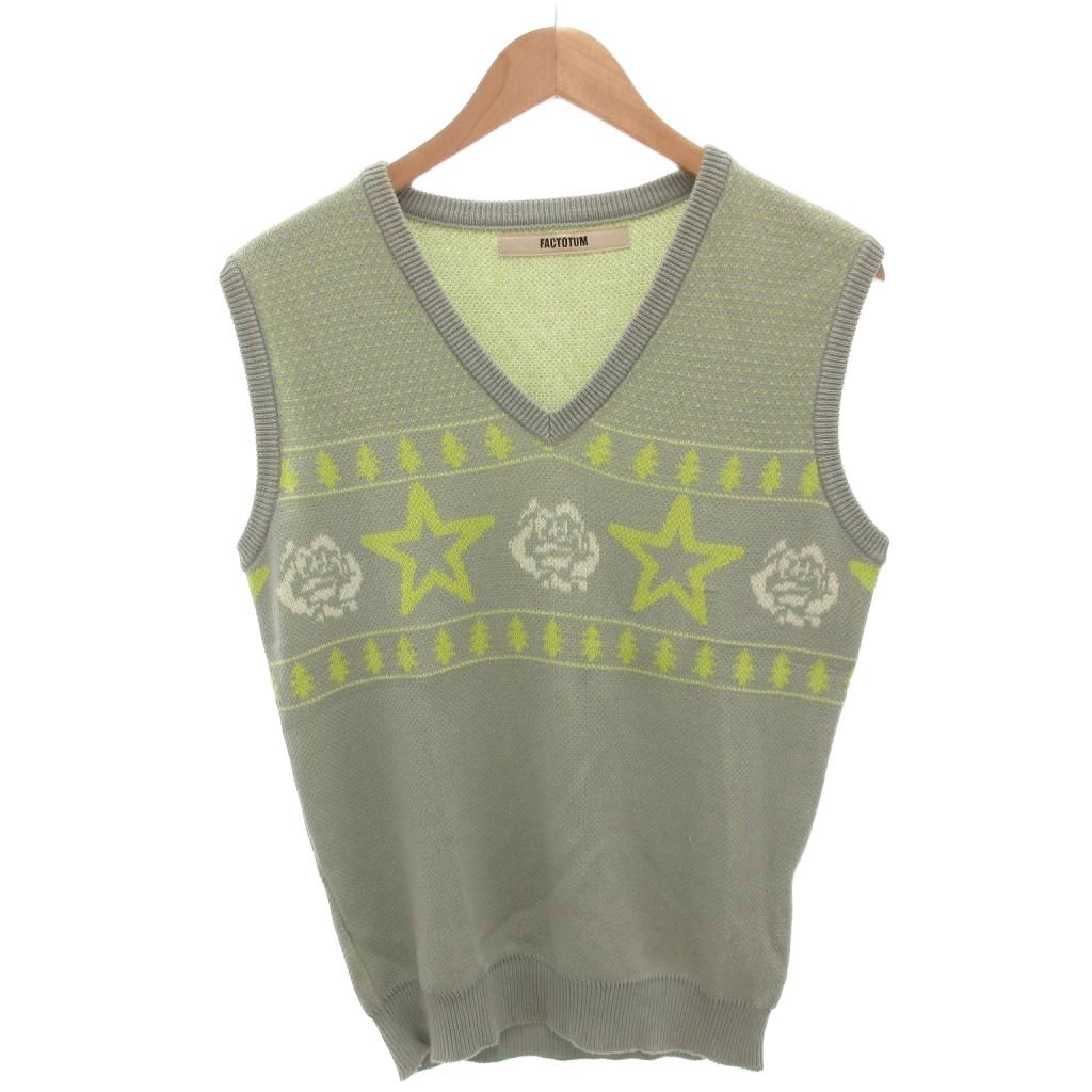 ファクトタム FACTOTUM ニット ベスト プルオーバー 46 緑 グリーン 総柄 /FF メンズ レディース