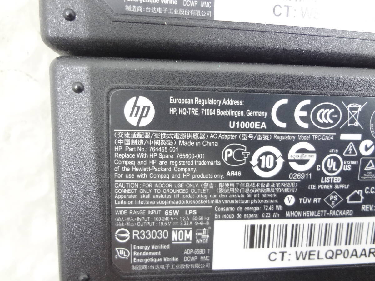 5個セット★hp ACアダプター TPC-CA54/TPC-DA54など 19.5V 3.33A 外径約5.5mm 65W 電源ケーブル付き 中古動作品