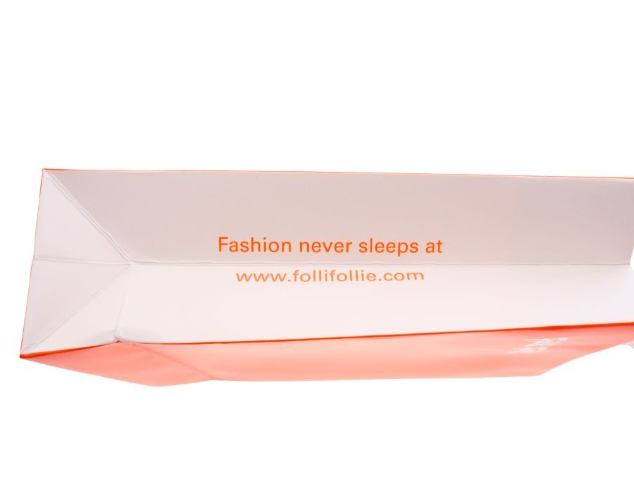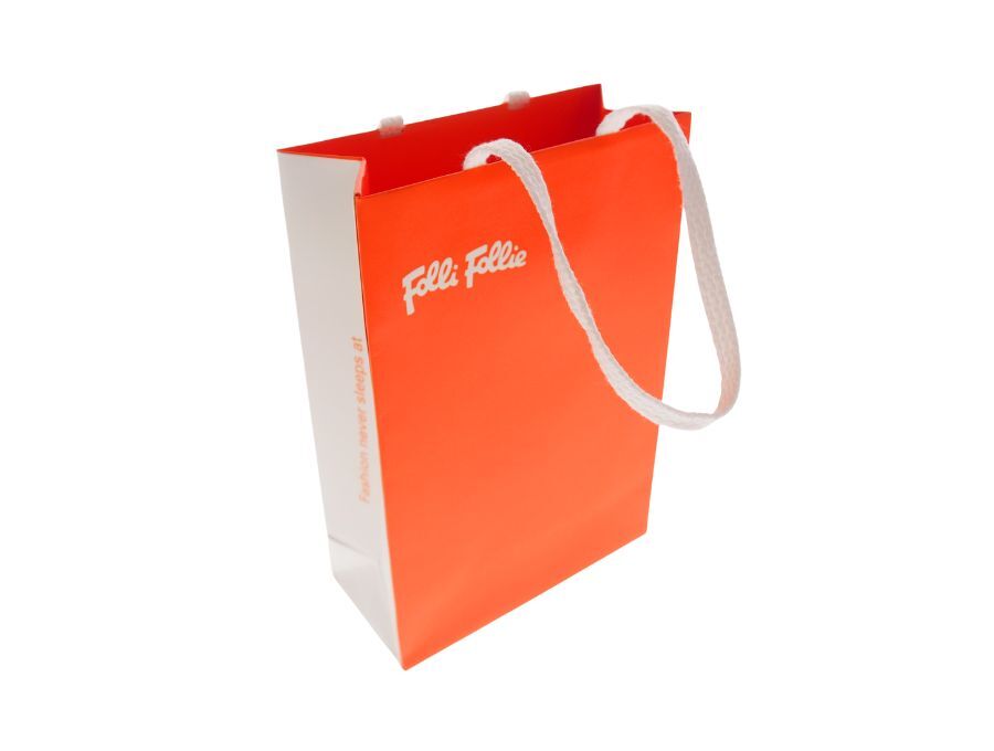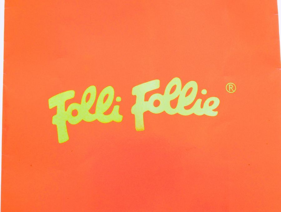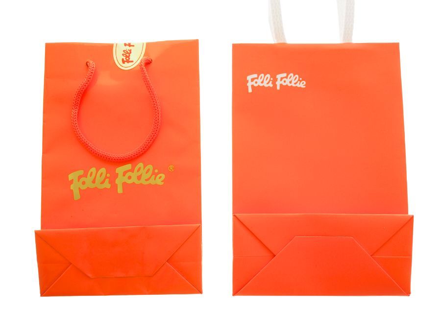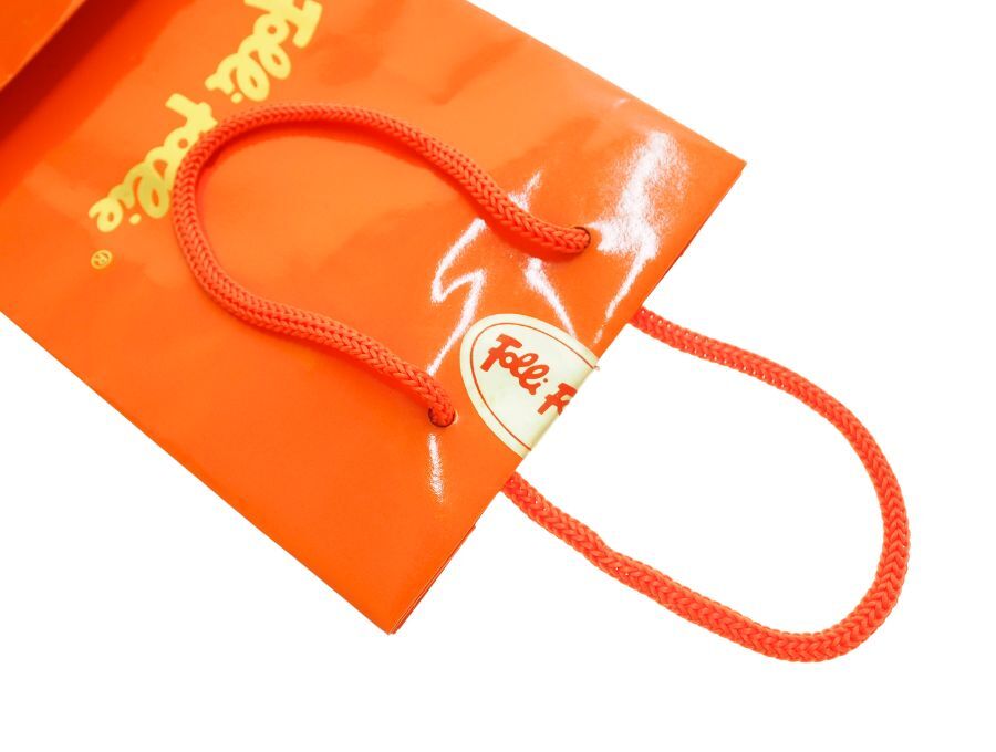 フォリフォリのショッピングバッグになります。新旧2バージョンを1枚ずつセットにしました。旧タイプは、光沢のある紙にゴールドの箔押しロゴ。2004年のハワイ アラモアナ・ショッピングセンター店舗での購入レシートが入っておりました。現行のタイプには、側面に「Fashion never sleeps at」www.follifollie.com と印字されています。どちらも購入商品を出して後、そのまま保管されていたショッパーになっております。