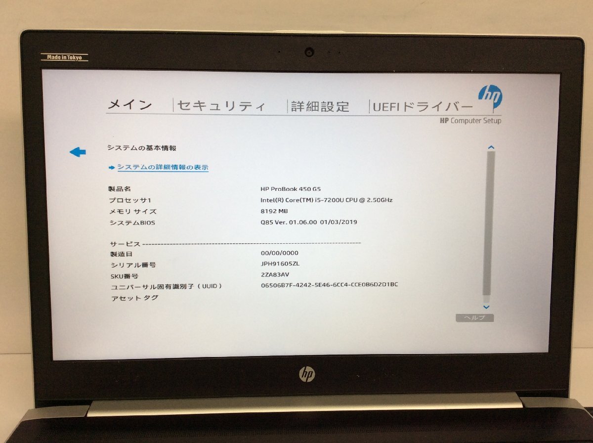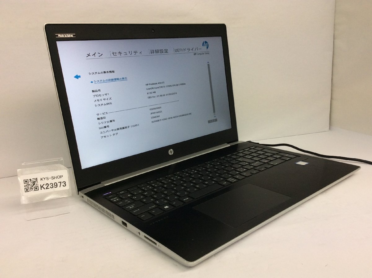 ジャンク/ HP HP ProBook 450 G5 Intel Core i5-7200U メモリ8.19GB ストレージ無し 【K23973】