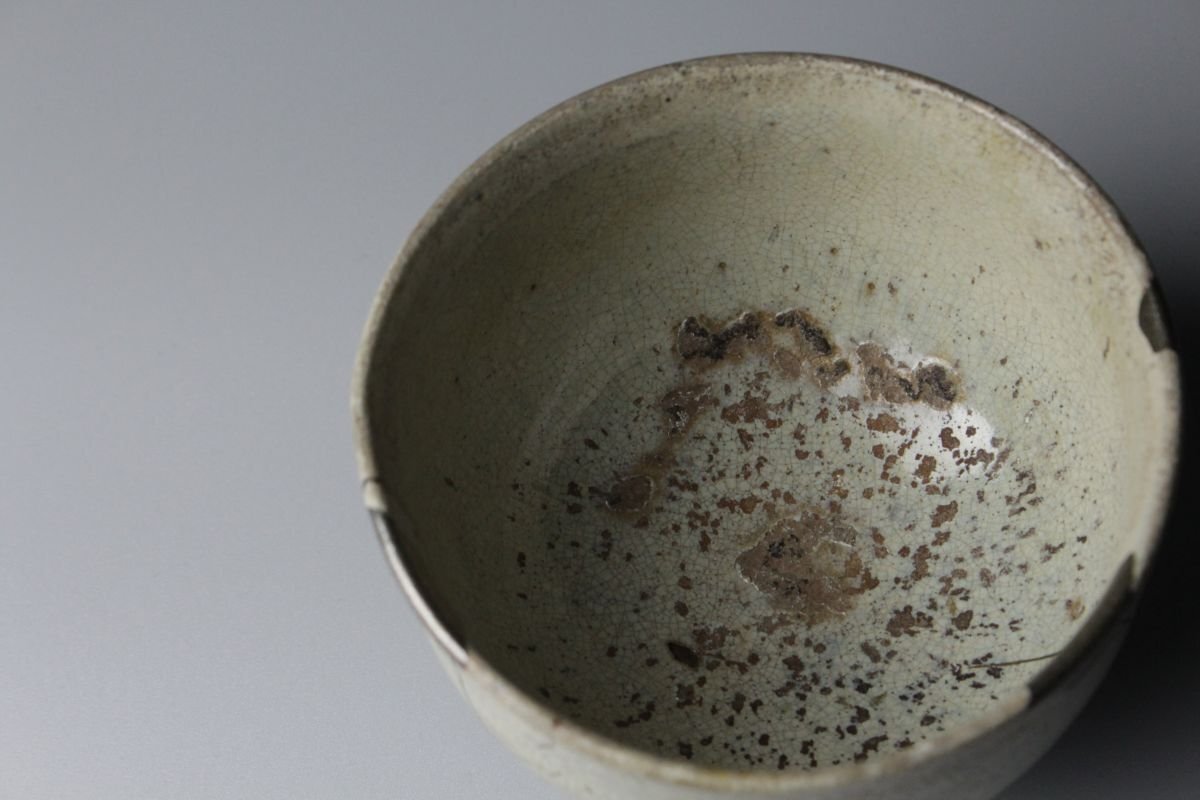 * * * 商品詳細 * * * ここでしか出逢うことのできない唯一の美をご紹介させて頂きます。 斑唐津ならではの幽玄な景色が魅力的なお品でございます。 熊川型の形状は手にしたときに収まりが良く、素朴な唐津焼 ならではの質感から温もりを感じます。 藁灰釉の柔らかな釉調は茶を注いだ時に茶の色が柔らかに引き立ち まさに、茶席に最適な一碗でございます。 当時の茶人が珍重した慎ましく穏やかな逸品 この機会に是非お手元にてご堪能ください。 ■商品内容/ 茶碗、箱 ■サイズ/横10.5㎝×高7㎝ 箱:四方13.5㎝×高10.5㎝ ■状態/ 経年によるスレ、小傷、汚れ、直し 箱にスレ、小傷、汚れ、ヤケがございます。 ※写真にてご確認、ご了承の上ご入札下さい。
