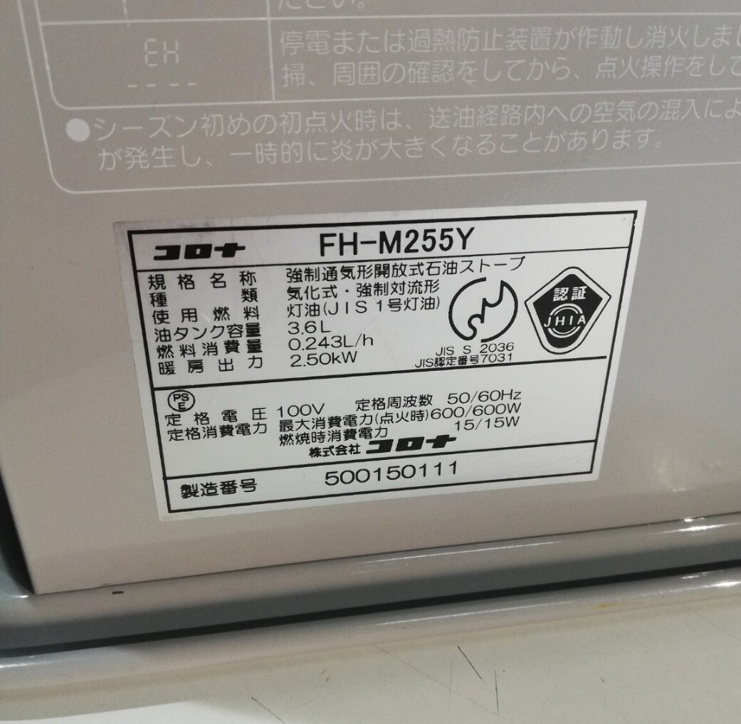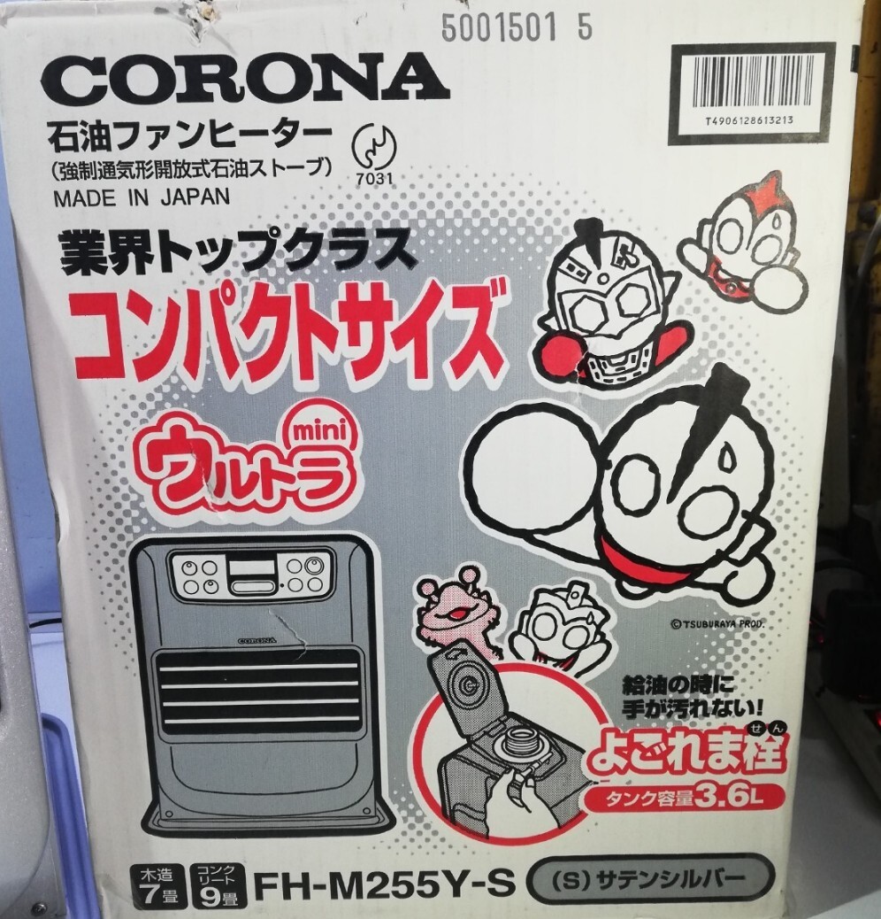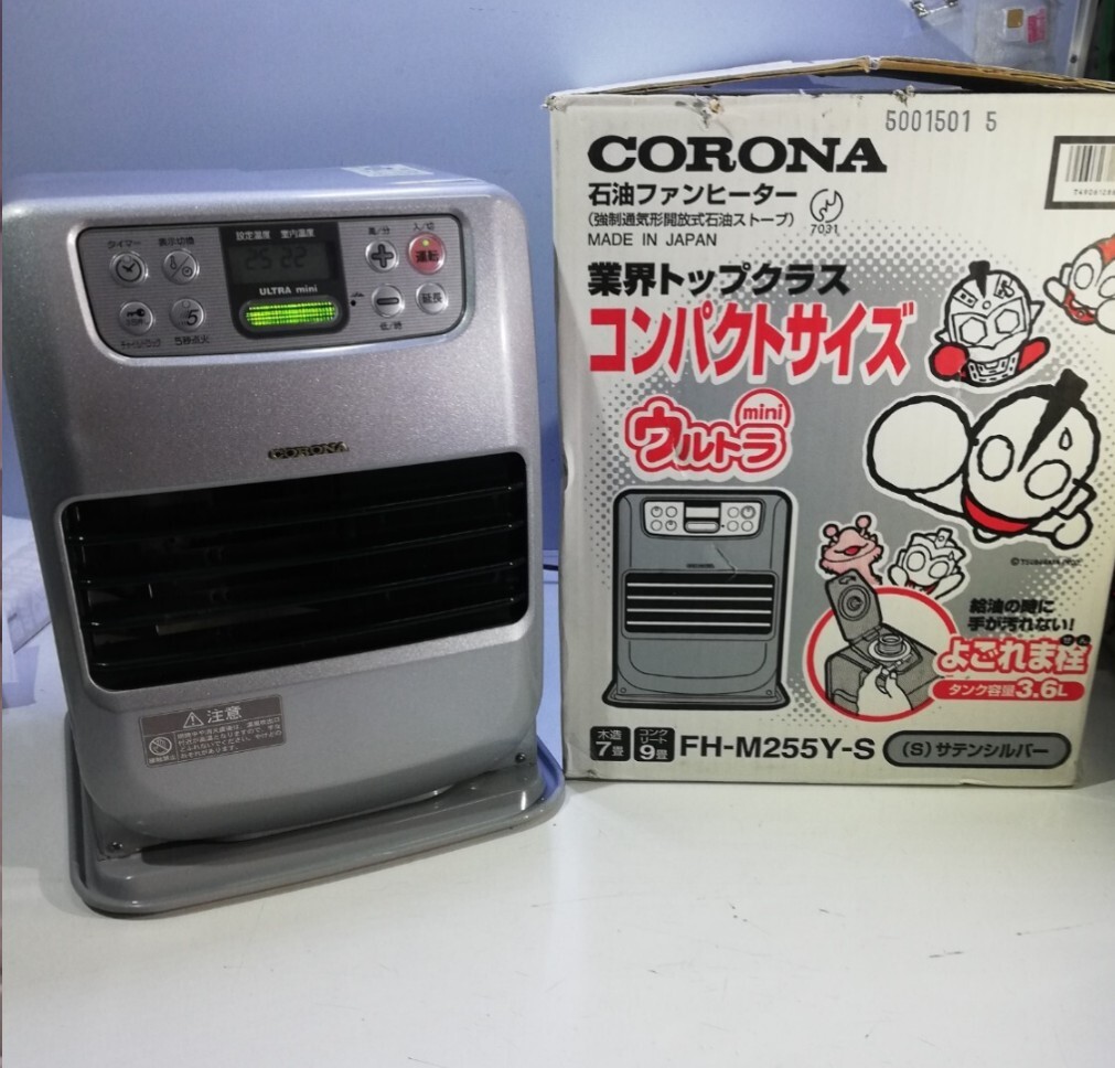コロナ 石油ファンヒーターFH-M255Y-S 木造7畳 コンクリート9畳 小燃費、一人暮らしに最適です。小さいのに凄く温かいです。綺麗に掃除しました。