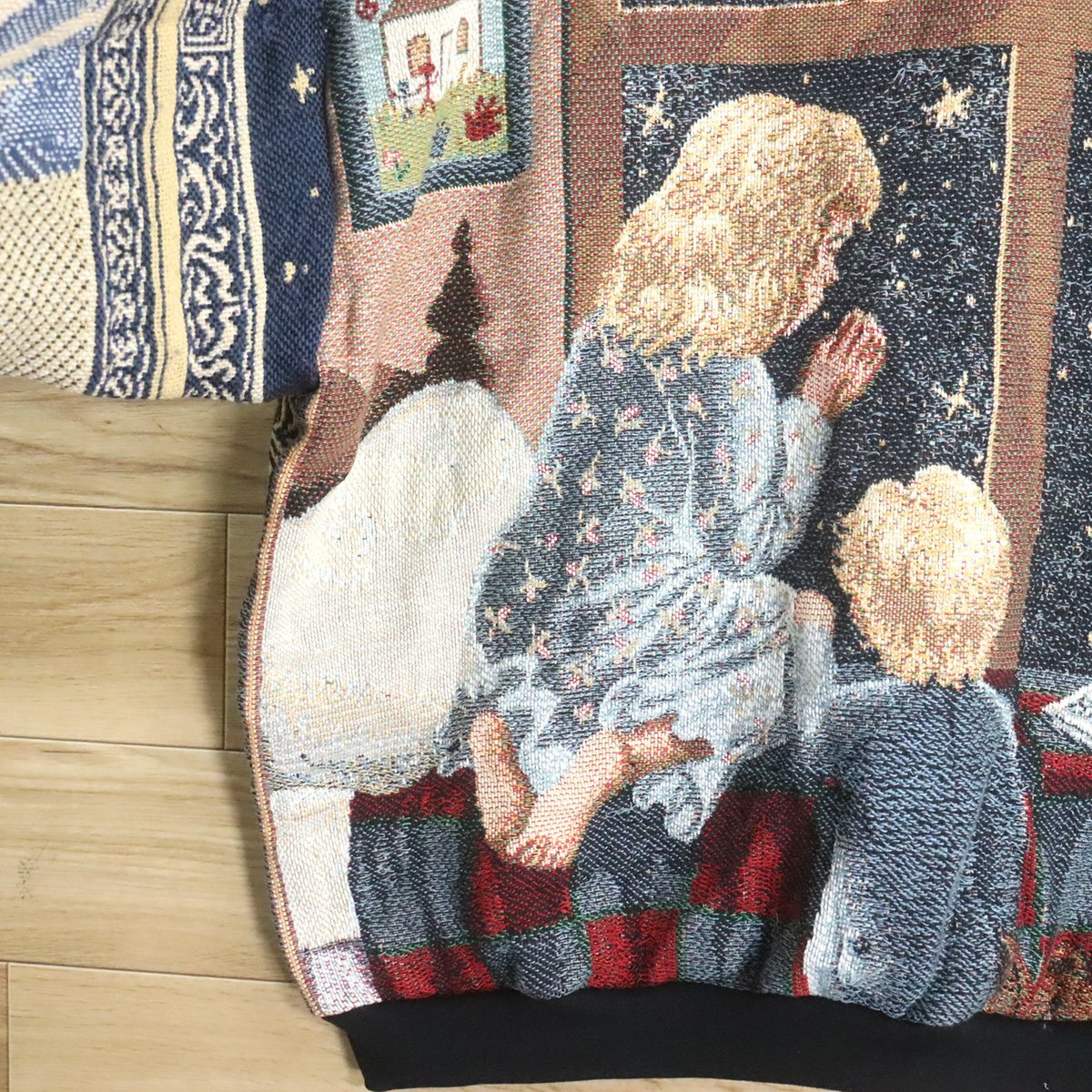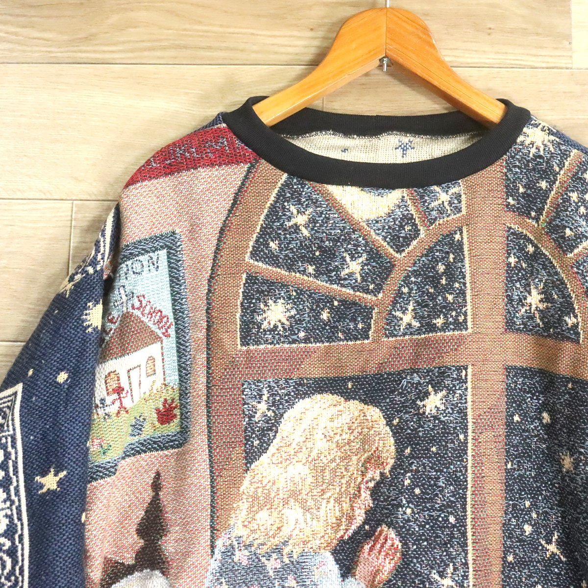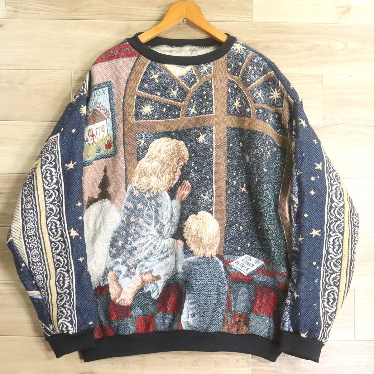 $2T/S11.4 アメリカ古着 ビンテージ ゴブラン ラグ リメイク スウェット トレーナー 天使 子供柄 パーカー 総柄 クレイジー