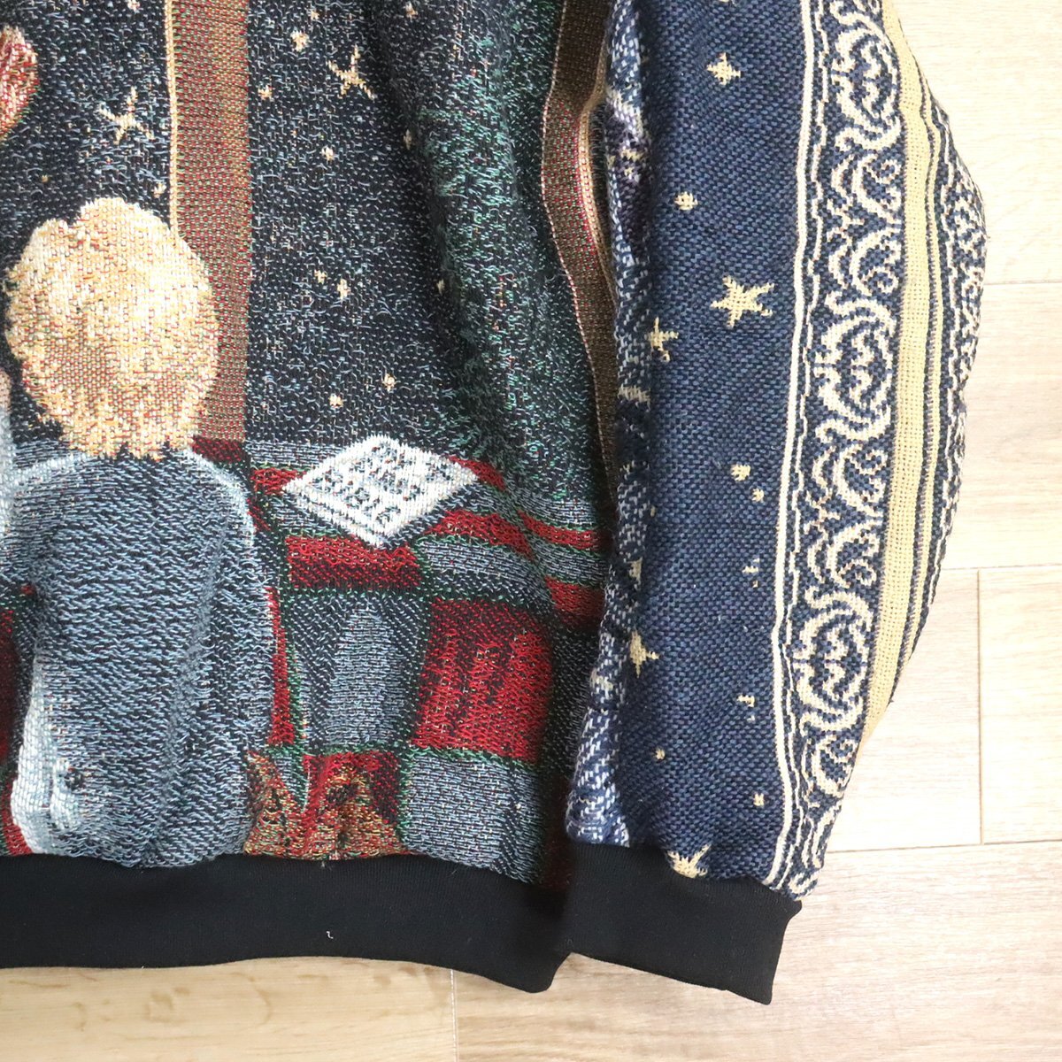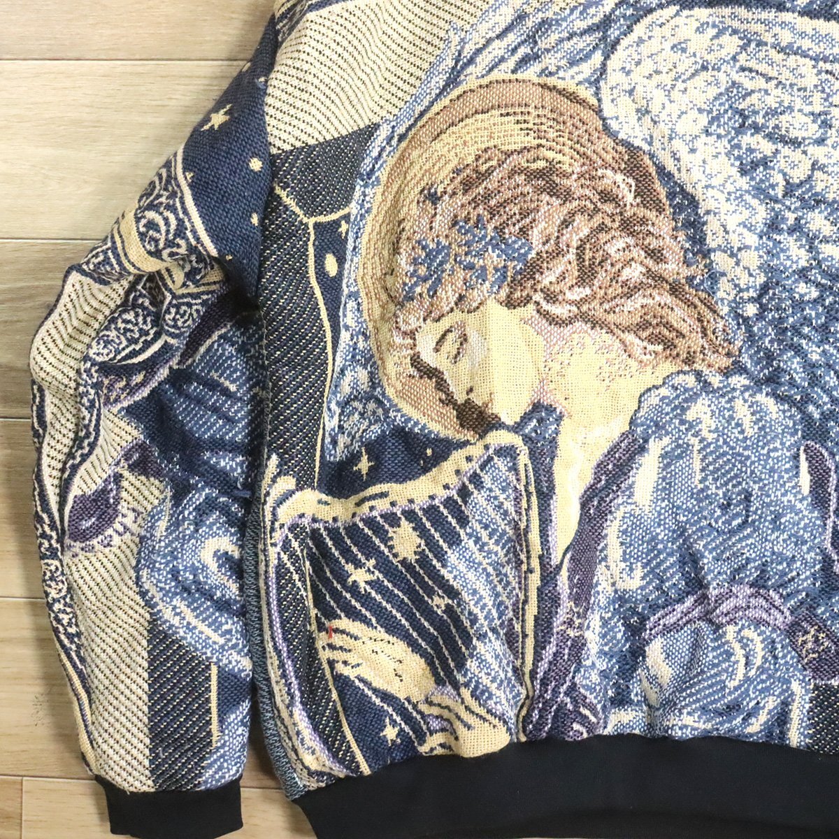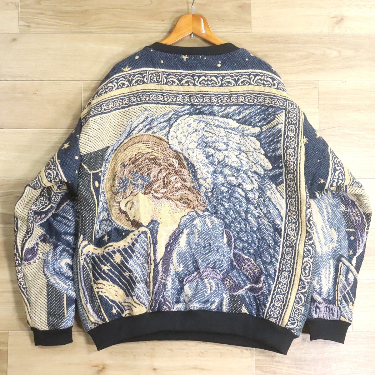 $2T/S11.4 アメリカ古着 ビンテージ ゴブラン ラグ リメイク スウェット トレーナー 天使 子供柄 パーカー 総柄 クレイジー
