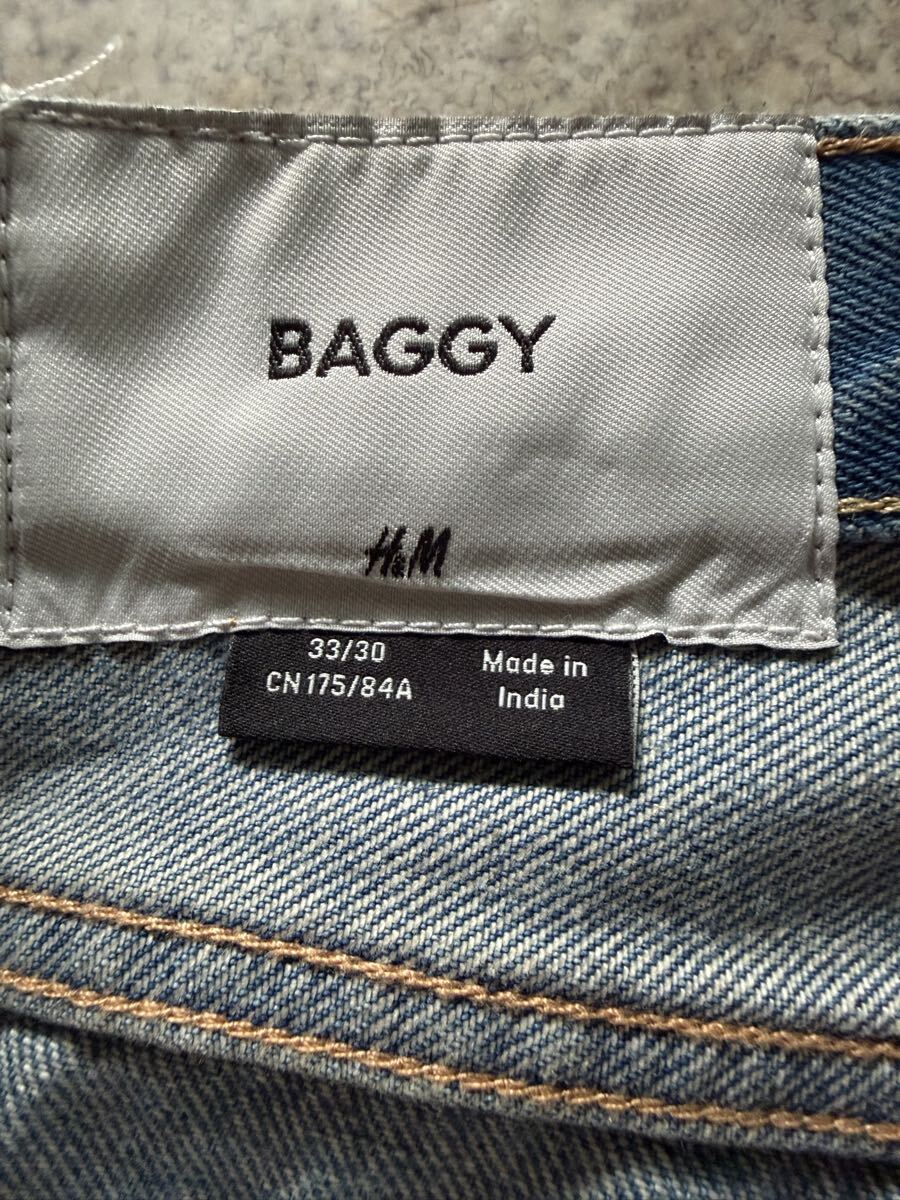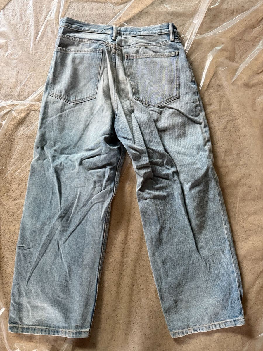 ライトブルーのバギーデニム、ストレートレッグデザインで快適な着心地。