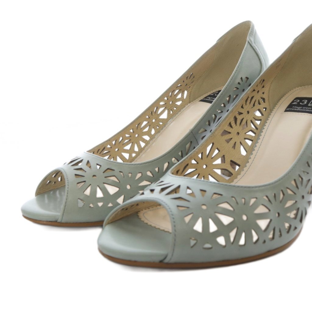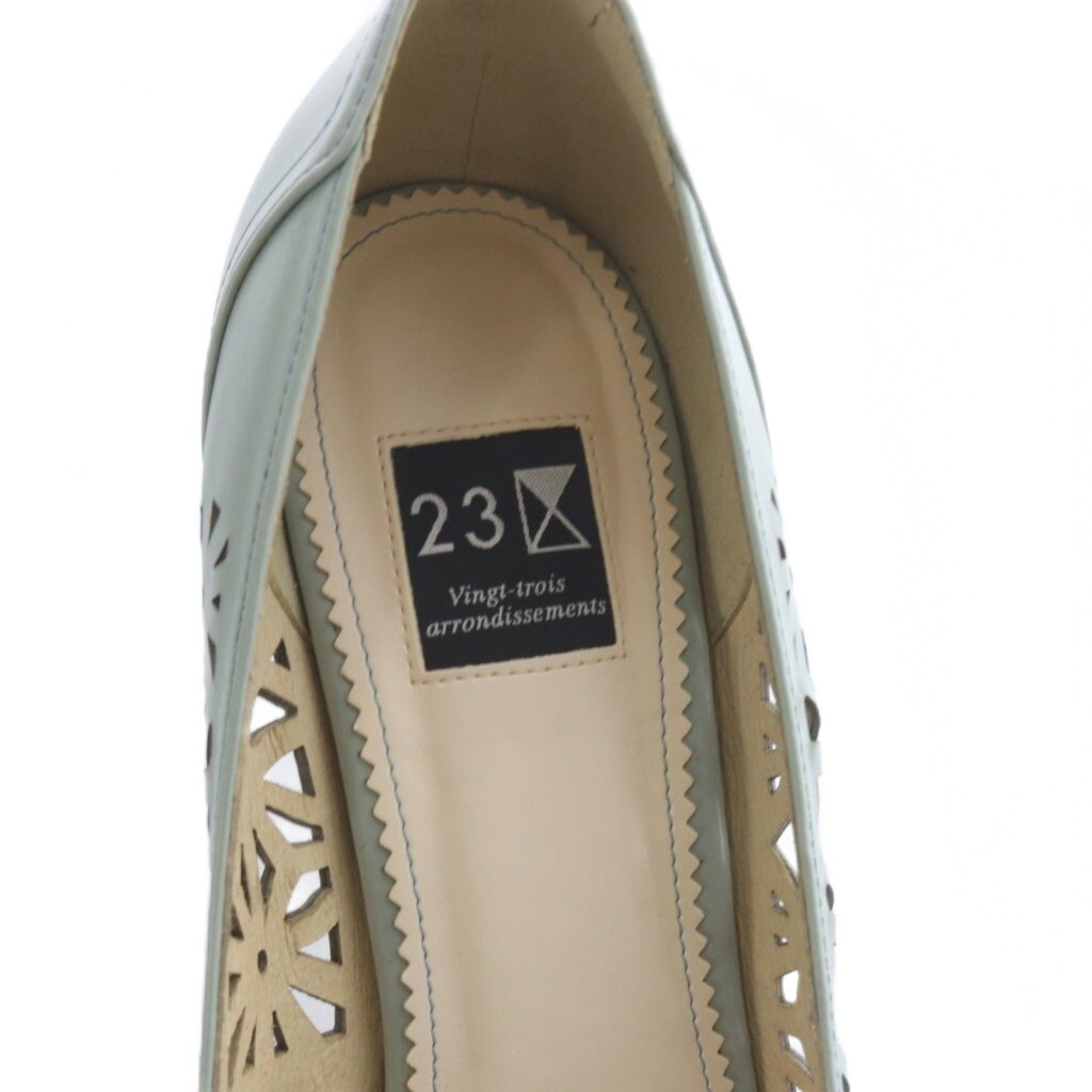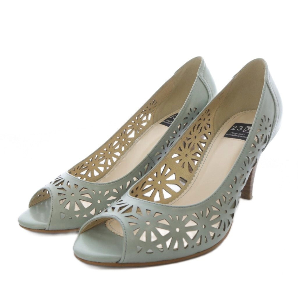 23区 オンワード樫山 vingt-trois パンプス ハイヒール オープントゥ カッティングレザー 23.5cm グリーン /YO23 レディース
