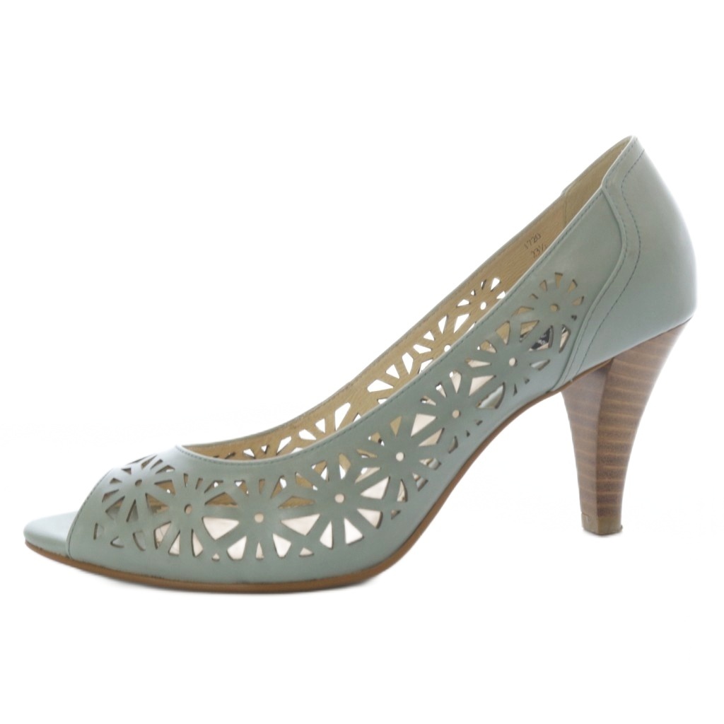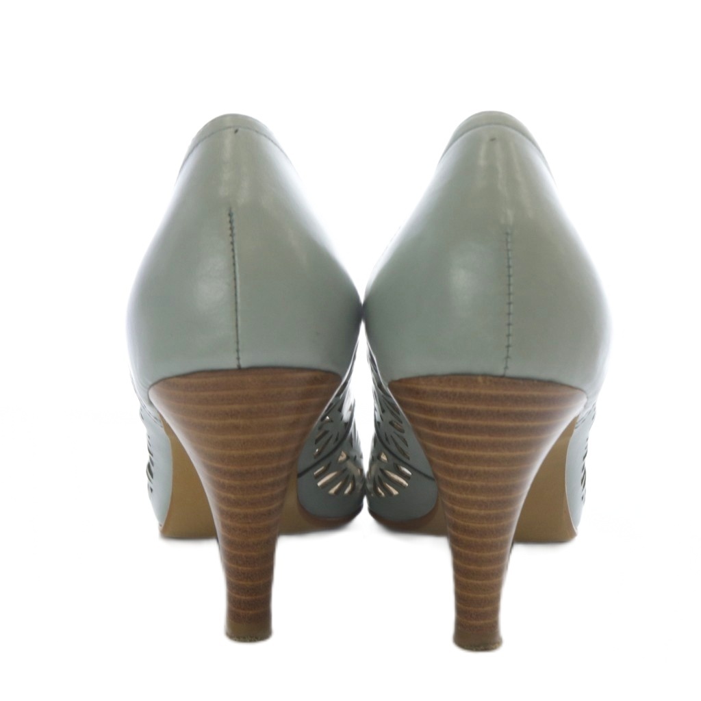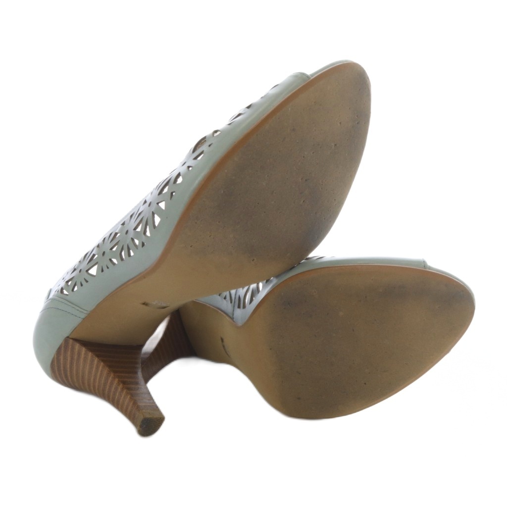 23区 オンワード樫山 vingt-trois パンプス ハイヒール オープントゥ カッティングレザー 23.5cm グリーン /YO23 レディース