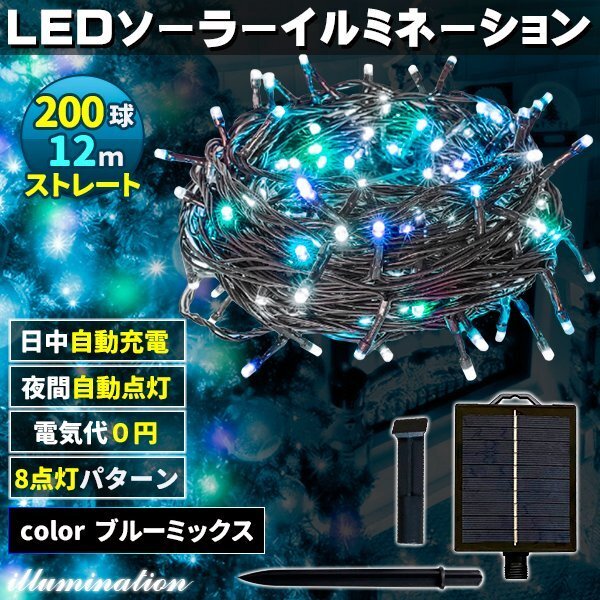 ソーラー イルミネーション 屋外 クリスマス ストレート 屋外用 イルミネーションライト 200球 Mixブルー