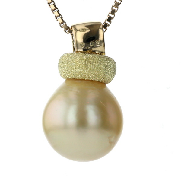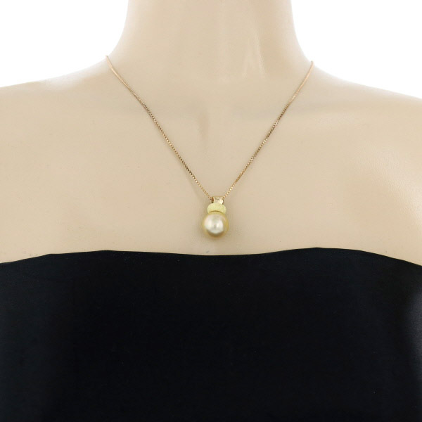 | 商品紹介 | イエローゴールドで作られたネックレスです。 トップは、ラウンド型の南洋真珠(ゴールデンパール)を1粒、その上部に小粒のダイヤモンドをあしらっています。 華やかで上品な印象がございます。 |
