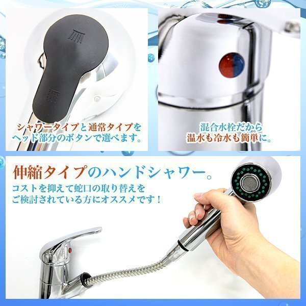 ハンドシャワー ノズル伸縮 タイプ蛇口ホース付 混合水栓 取り付け シャワーヘッド シングルレバー 洗面用水栓 キッチン用水栓 洗面台蛇口