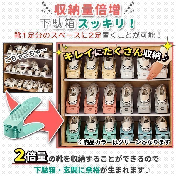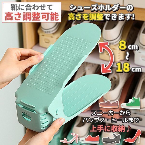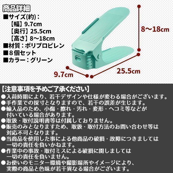シューズホルダー 靴収納 8足分 スニーカー収納 グリーン 玄関収納 くつホルダー 靴ホルダー 靴 収納 靴箱整理 靴 靴箱 下駄箱 玄関 スリム