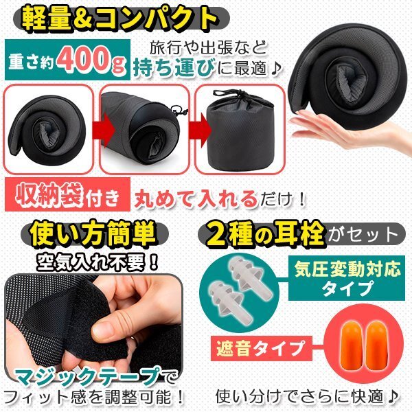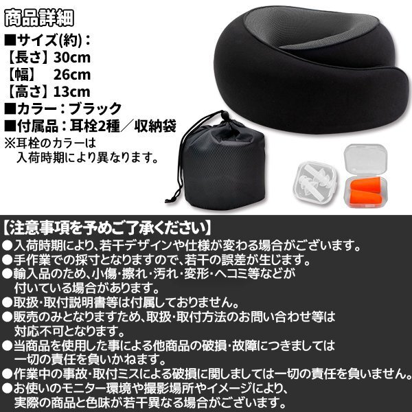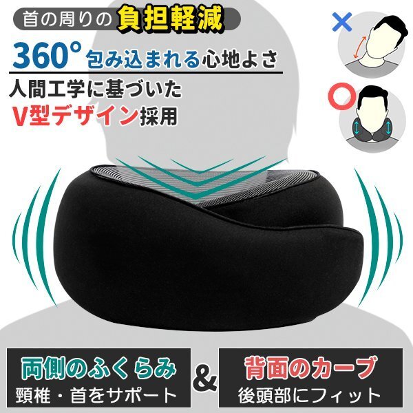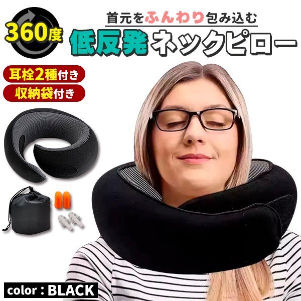 ネックピロー クッション 低反発 首枕 耳栓 2種付き 飛行機 車 ブラック コンパクト 旅行 洗える 大人 子供 枕 リラックス 肩こり U字 V字