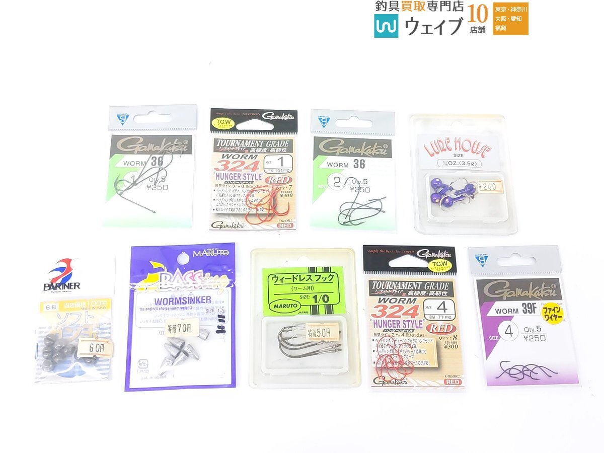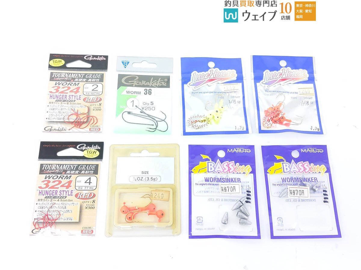| 商品名 | ガマカツ TGW ワーム324、トウホウ ドゥールドゥルボール、マルト ワームシンカー 等 フック ビーズ ジグヘッド 計73点セット |