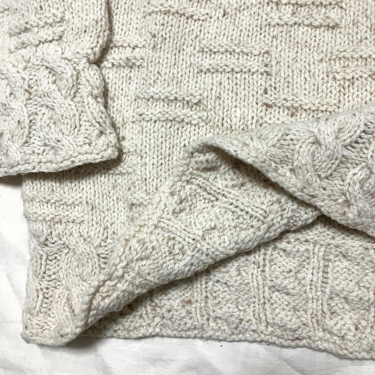 #プレゼント #誕生日 #母の日 #父の日 #手作り #ハンドメイド #クリスマス #純毛 #ウール #メンズ #男性 #襟 #セーター #ベージュ #スタンドカラー #クラシック #縄編み模様 #大きい #L #LL #女性 #秋 #冬 #レディス #棒針編み # # # #
