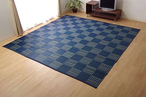イケヒコ ラグ カーペット 畳 マット 肌触りが良い 正方形 国産 日本製 ウィード PP ネイビー 江戸間2畳約 174×174cm 傷がつき